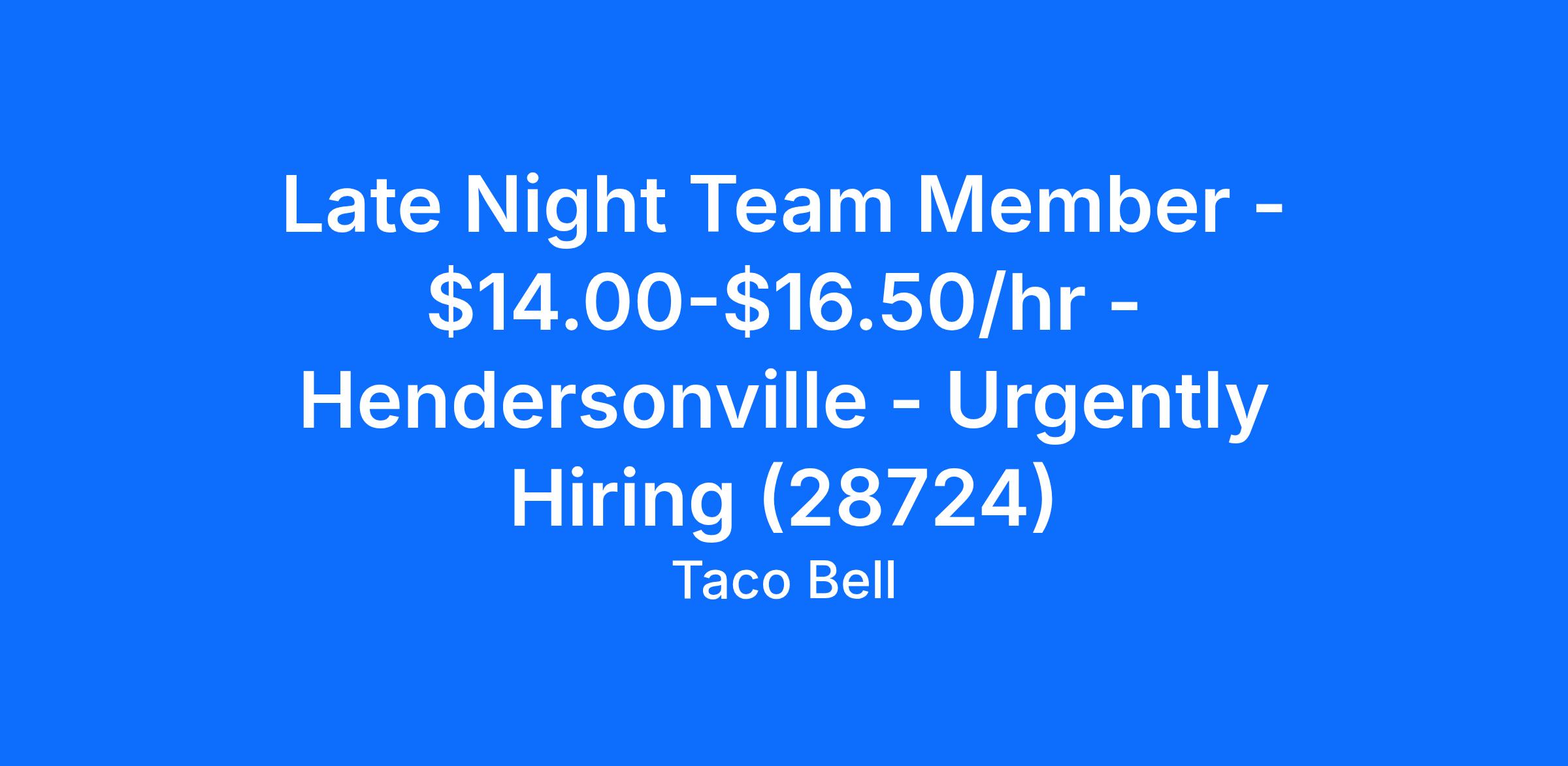 Late Night Team Member - $14.00-$16.50/hr - Hendersonville - Urgently Hiring (28724)