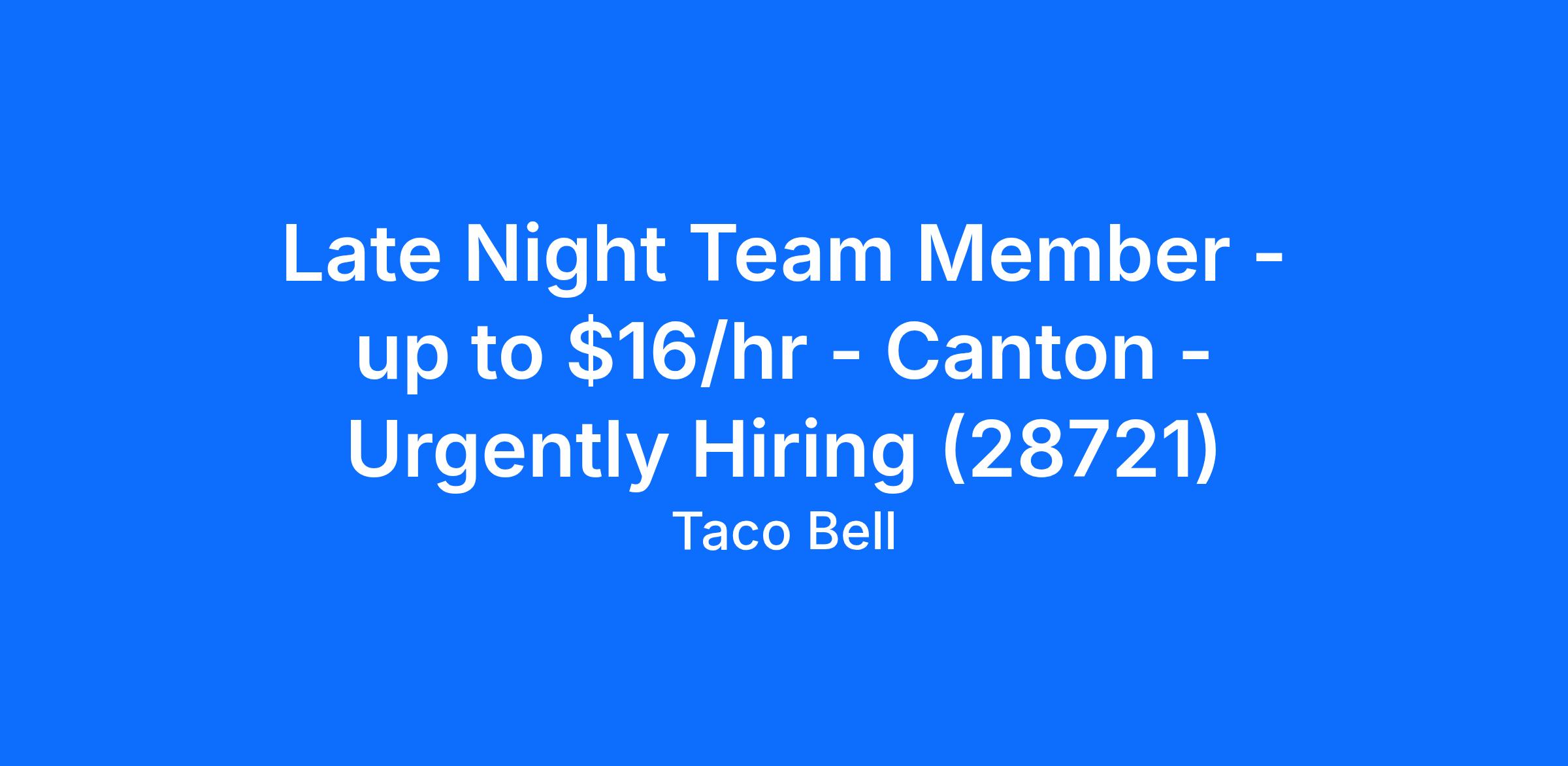 Late Night Team Member - up to $16/hr - Canton - Urgently Hiring (28721)