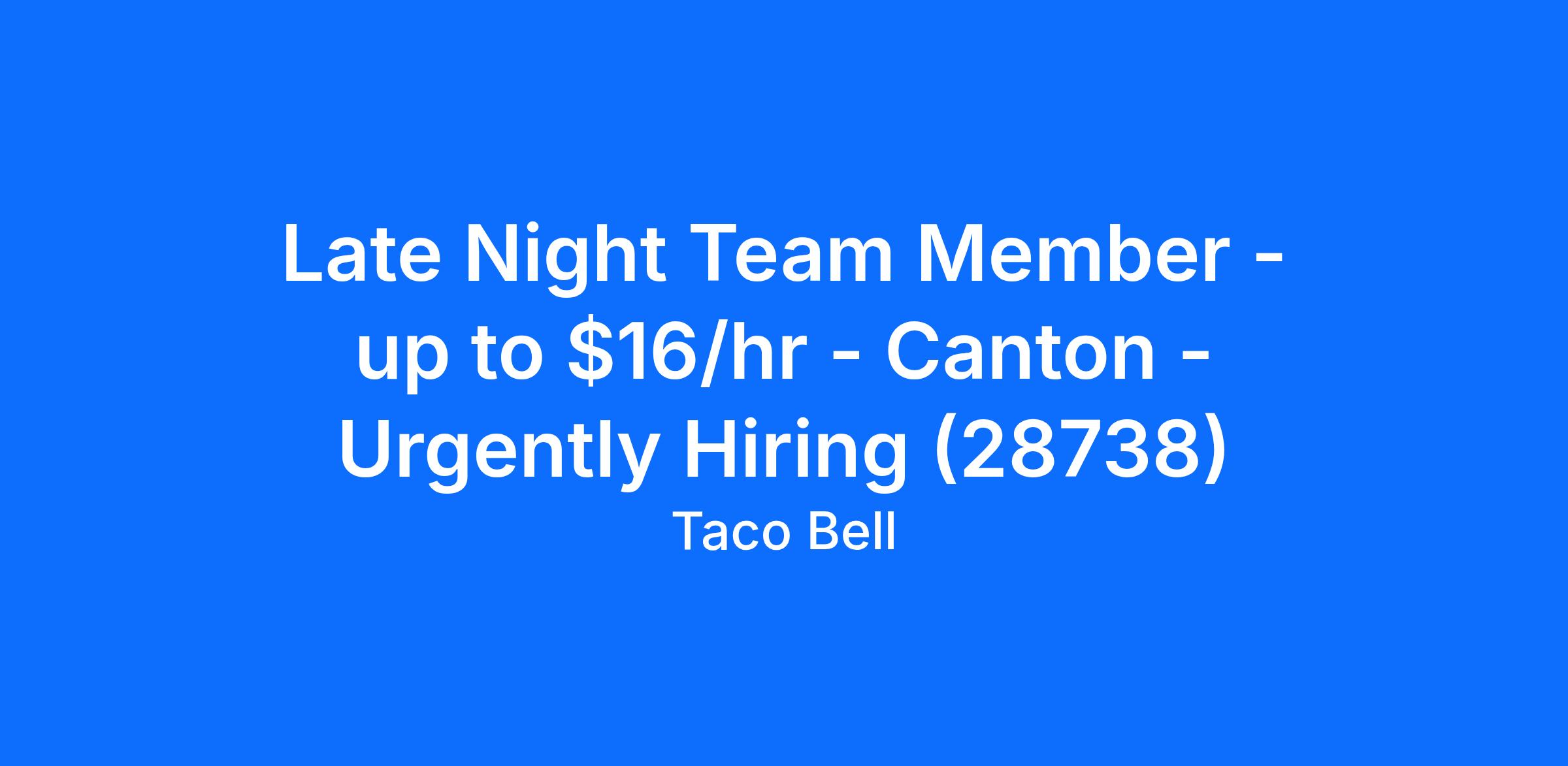 Late Night Team Member - up to $16/hr - Canton - Urgently Hiring (28738)