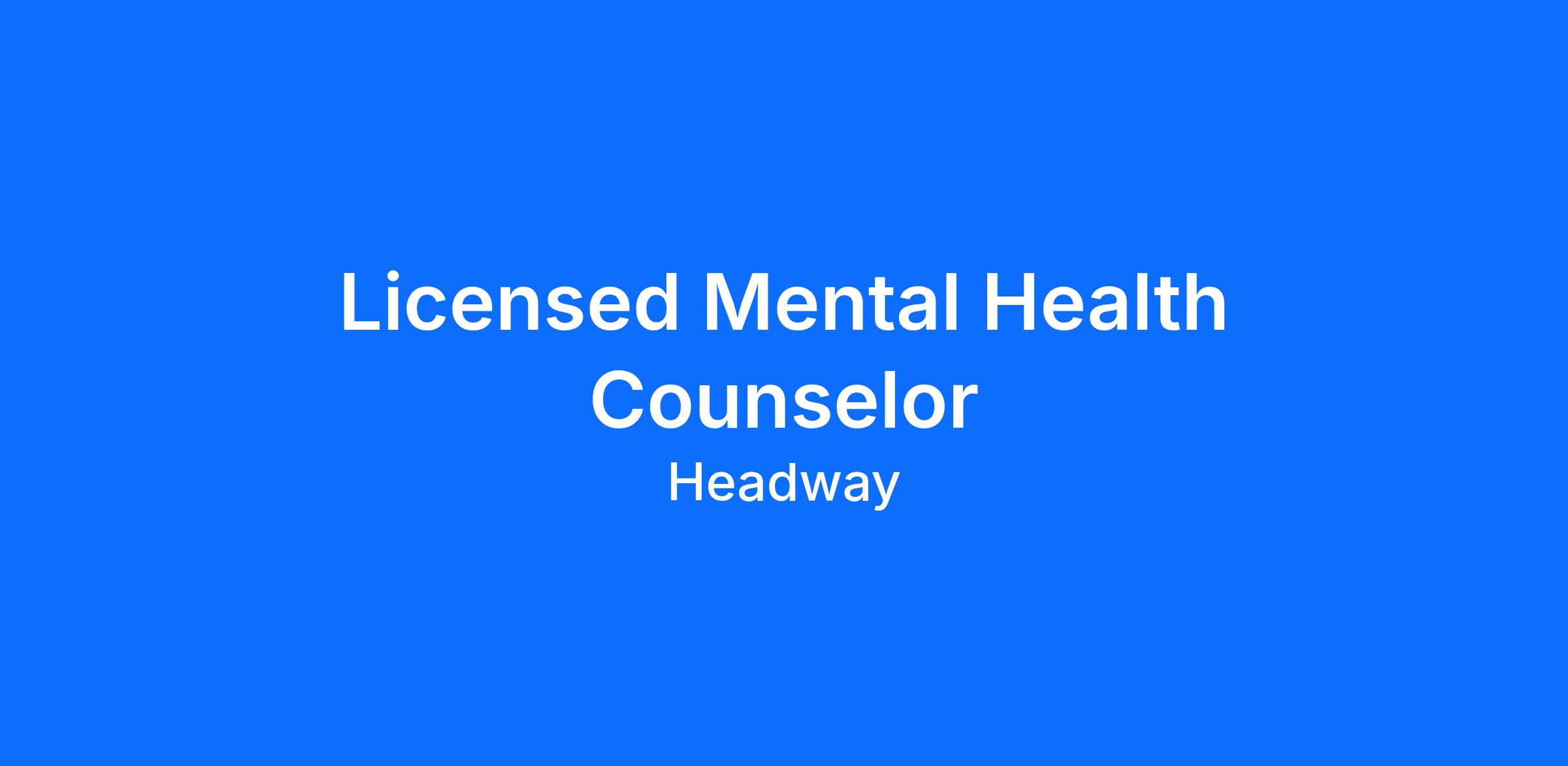 Licensed Mental Health Counselor — Are you ready to launch or expand your private practice? Headway is here to help you start accepting insurance with ease, increase your earnings with higher rates, and start taking covered clients sooner. It's all on one free-to-use platform, no commitment required.