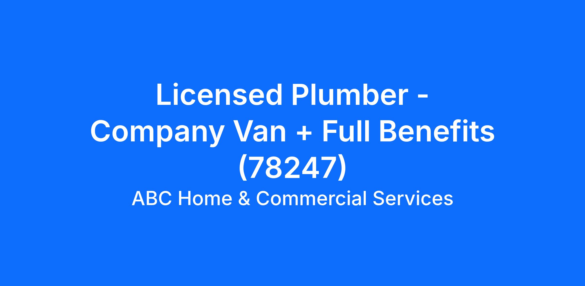 Only seeking applicants local to the San Antonio area - residing within that radius would be necessary.To apply for this position, you must have a minimum of 2 years of Residential plumbing experience.Are you ready to embark on an exciting career with ABC Home & Commercial Services? We're not just a company; we're a close-knit community dedicated to service and excellence. With 75 years of history and a team of over 1,000+ employees serving a growing network of cities in Central and South Texas, we take pride in being a family-owned business dedicated to fulfilling commitments, serving others, and supporting families. Come be a part of something special - apply now!