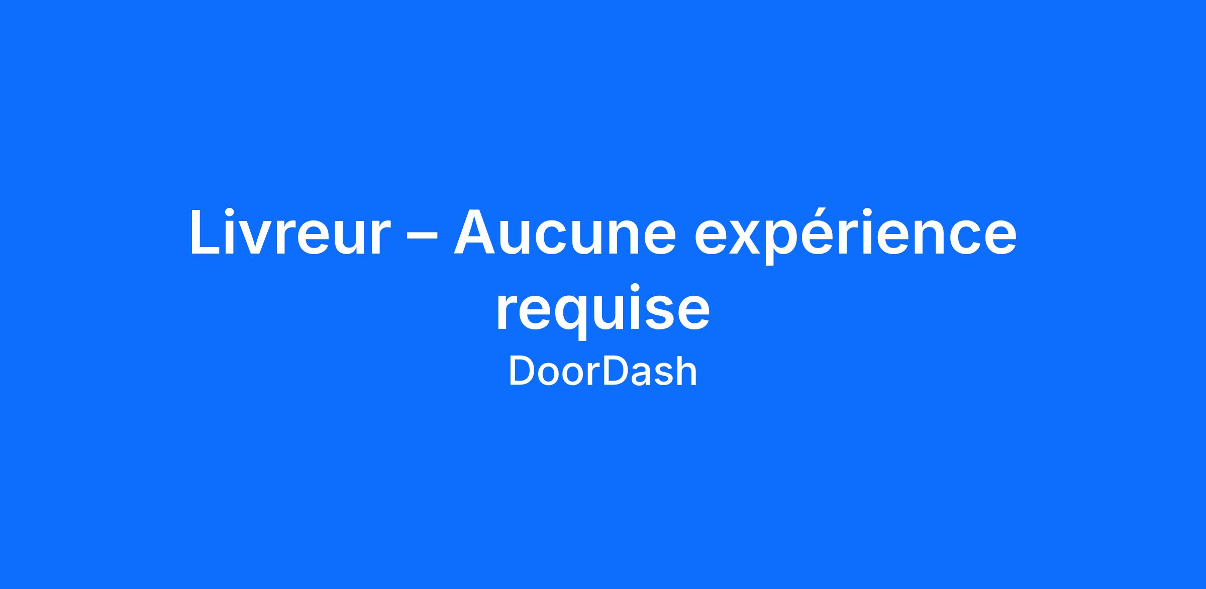 Pourquoi livrer avec DoorDash? DoorDash est le chef de file de la livraison de repas et de commandes à emporter et de la livraison de dépanneur aux États-Unis. Des millions de clients lui font confiance chaque jour. En tant que Dasher, tu resteras occupé grâce à une variété de possibilités de revenus et tu pourras travailler lorsque cela te conviendra. Que tu cherches un emploi secondaire ou à temps plein, être livreur avec DoorDash t'offre la possibilité de gagner plus d'argent selon tes conditions. Plusieurs façons de faire de l'argent : que ce soit pour livrer des commandes de restaurant, d'épicerie ou de détaillant, DoorDash t'offre diverses possibilités de revenus pour optimiser ton temps. Flexibilité totale : effectue des dashs lorsque ça te convient. Établis ton propre horaire et travaille autant ou aussi peu que tu le veux. Sais combien d'argent tu gagneras : un modèle de rémunération clair et concis te permet de connaître le montant minimum que tu gagneras avant d'accepter toute offre. Flux de trésorerie immédiat : sois payé le jour même que tu effectues des dashs avec DoorDash Crimson*. Sans frais de dépôt, ni attente. Démarrage rapide et facile : inscris-toi en quelques minutes et prends la route rapidement. Processus simple : il suffit de ramasser, de déposer et d'encaisser. Le jour de paie est dans tes poches. Exigences de base 18 ans et plus (21 ans et plus pour livrer de l'alcool) N'importe quelle voiture, scooter ou bicyclette (dans certaines villes) Numéro de permis de conduire Numéro d'assurance sociale (seulement aux États-Unis) Accès constant à un téléphone intelligent Comment s'inscrire Clique sur « Inscris-toi maintenant » et complète le processus d'inscription Télécharge l'application Dasher de DoorDash et c'est parti * Sous réserve de conditions d'admissibilité. Le compte de dépôt DoorDash Crimson est établi par Starion Bank, membre de la FDIC. La carte de débit Visa DoorDash Crimson est émise par Starion Bank. Sous réserve d'admissibilité. Doit être âgé de 19 ans et plus en Arizona, en Californie, au Colorado, au Delaware, en Floride, en Géorgie, en Idaho, au Kentucky, au Montana, au New Jersey, au Nouveau-Mexique, au Texas, en Utah et en Virginie-Occidentale Informations supplémentaires Livrer avec DoorDash est une excellente occasion de gagner des revenus pour toute personne à la recherche d'un emploi de livraison à temps partiel, saisonnier, flexible, de fin de semaine, après l'école, temporaire ou stable. Effectue des livraisons avec DoorDash et gagne un revenu supplémentaire tout en étant ton propre patron. Effectue des dashs lorsque ça te convient. Inscris-toi dès aujourd'hui.