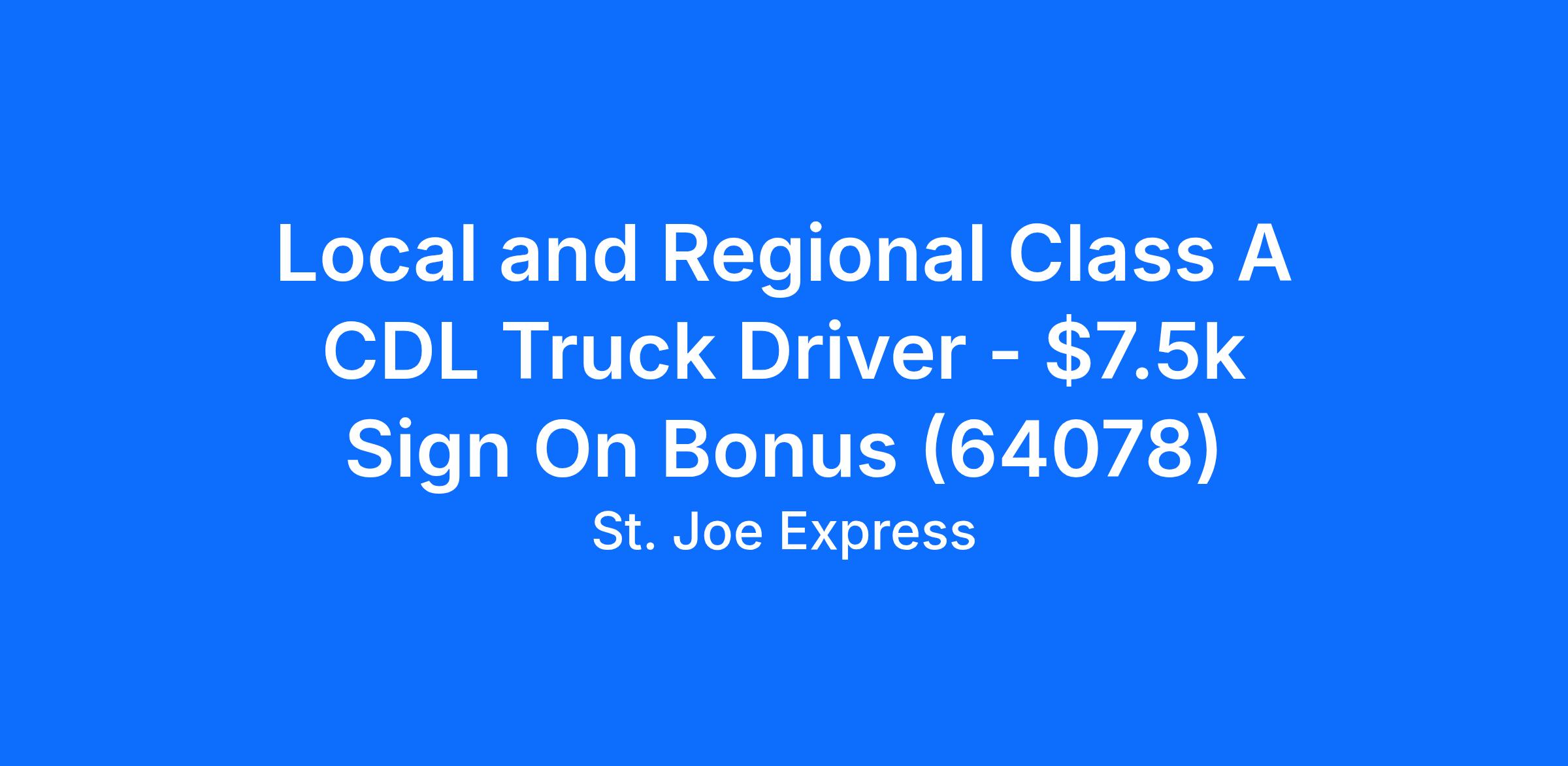 Local and Regional Class A CDL Truck Driver - $7.5k Sign On Bonus (64078)