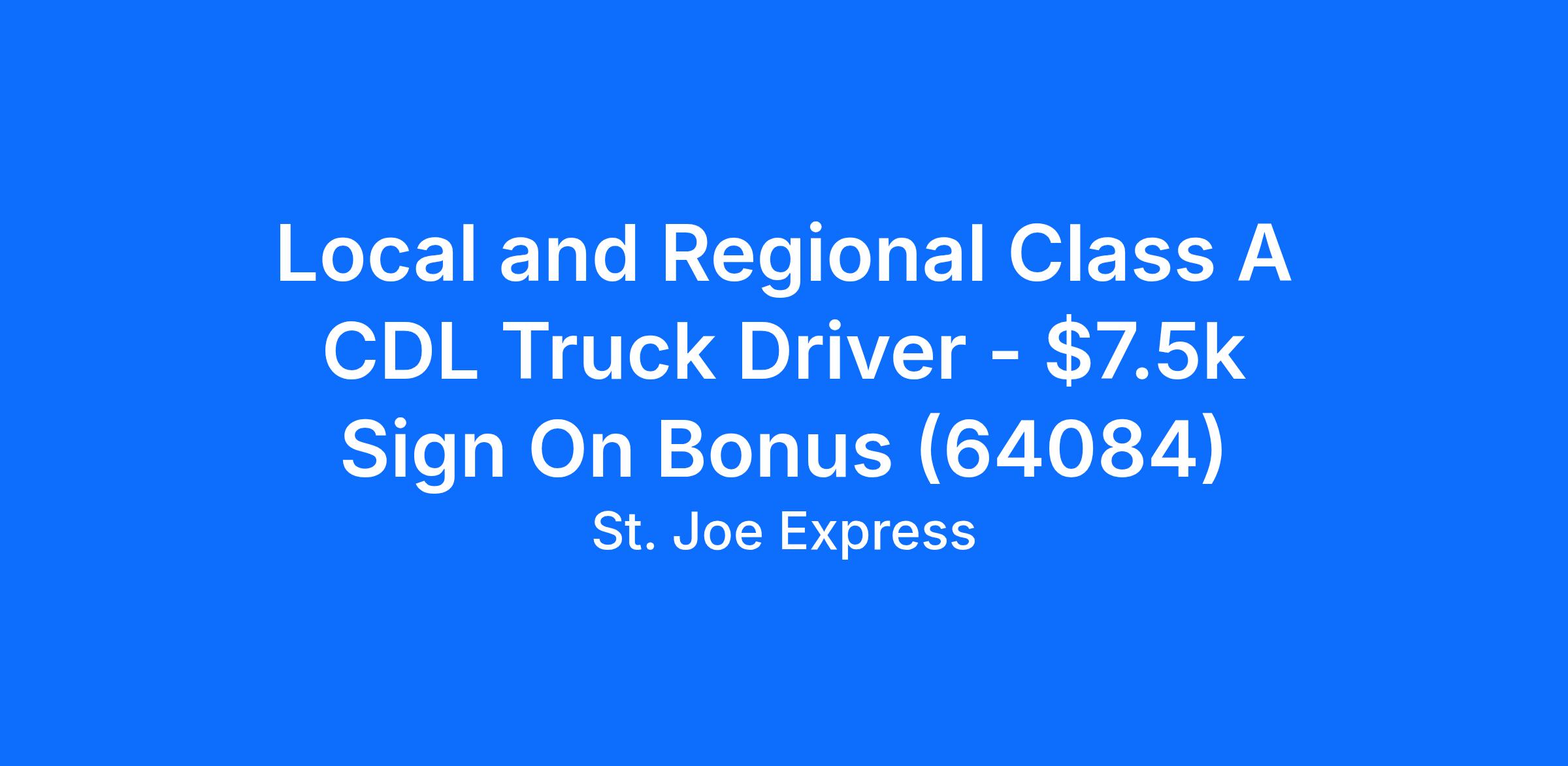 Local and Regional Class A CDL Truck Driver - $7.5k Sign On Bonus (64084)