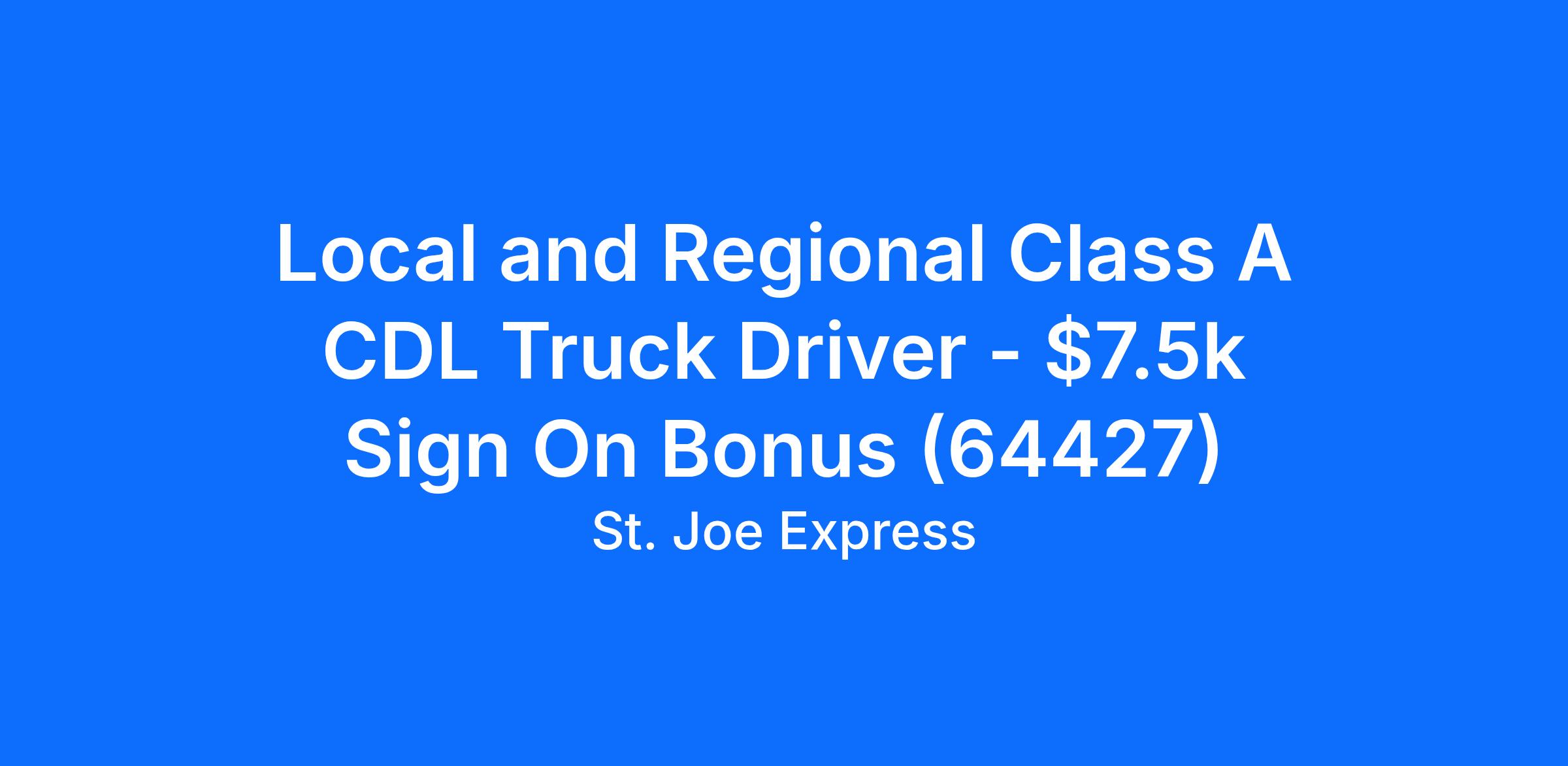 Local and Regional Class A CDL Truck Driver - $7.5k Sign On Bonus (64427)