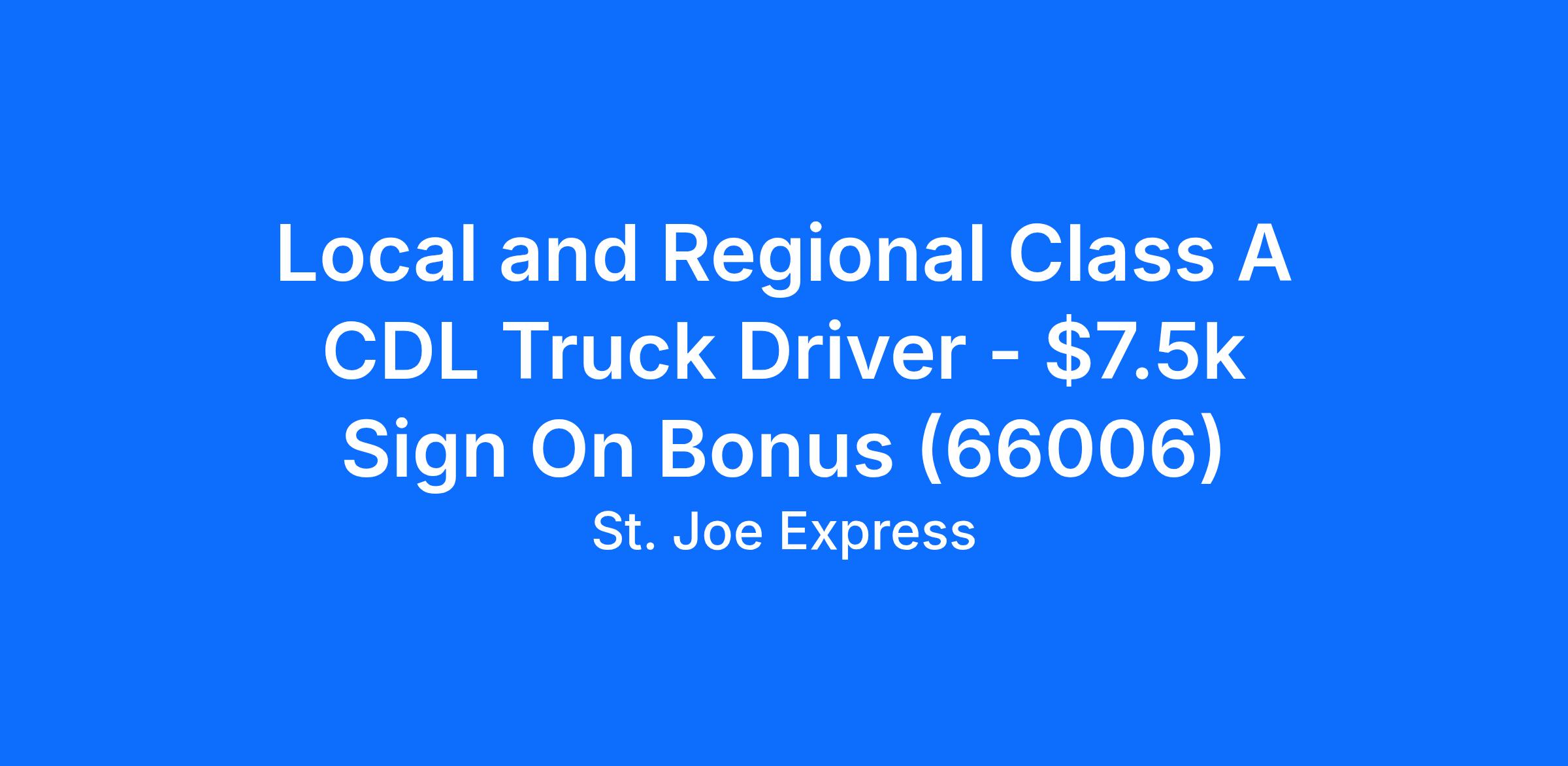 Local and Regional Class A CDL Truck Driver - $7.5k Sign On Bonus (66006)