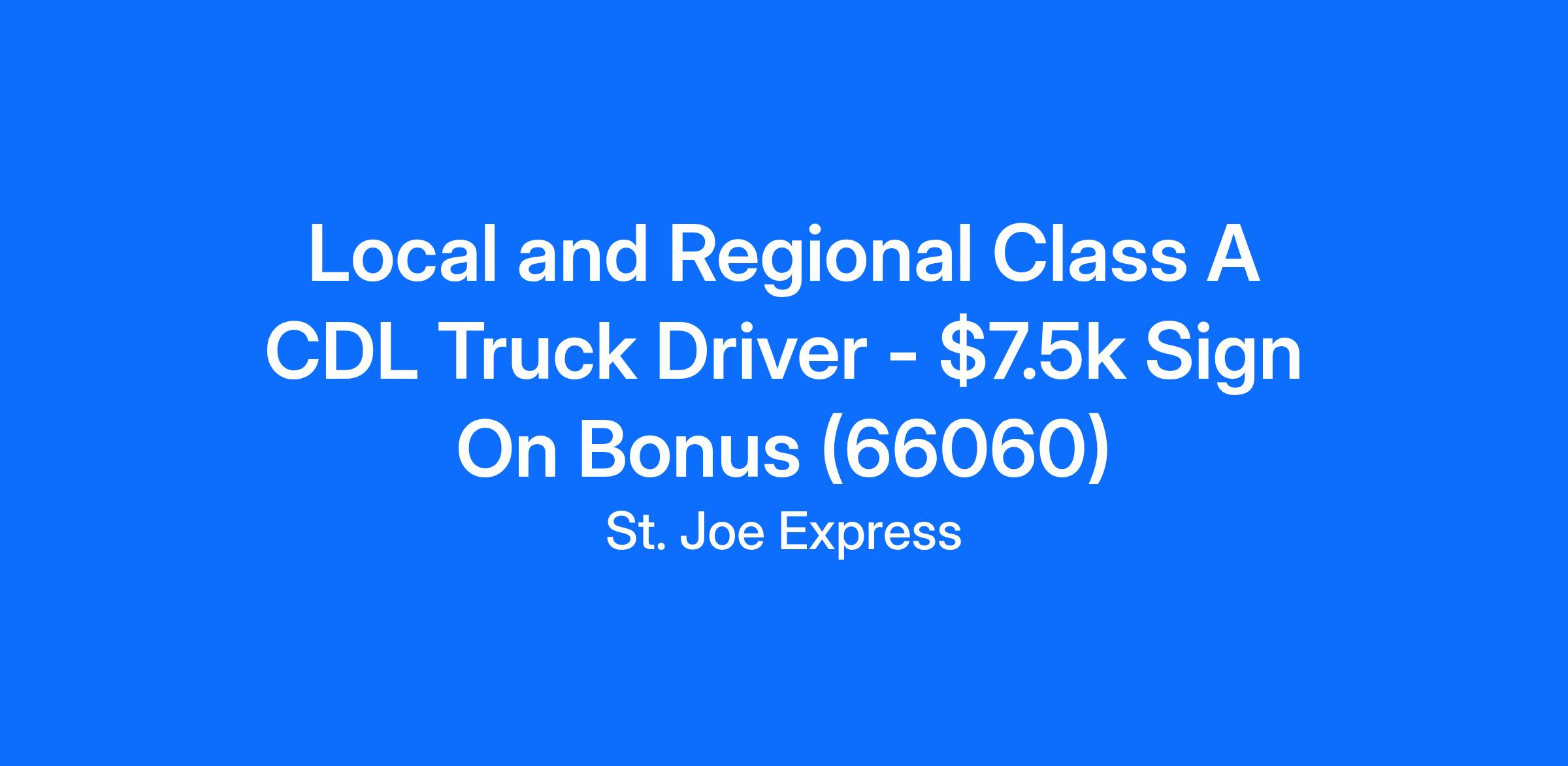Local and Regional Class A CDL Truck Driver - $7.5k Sign On Bonus (66060)