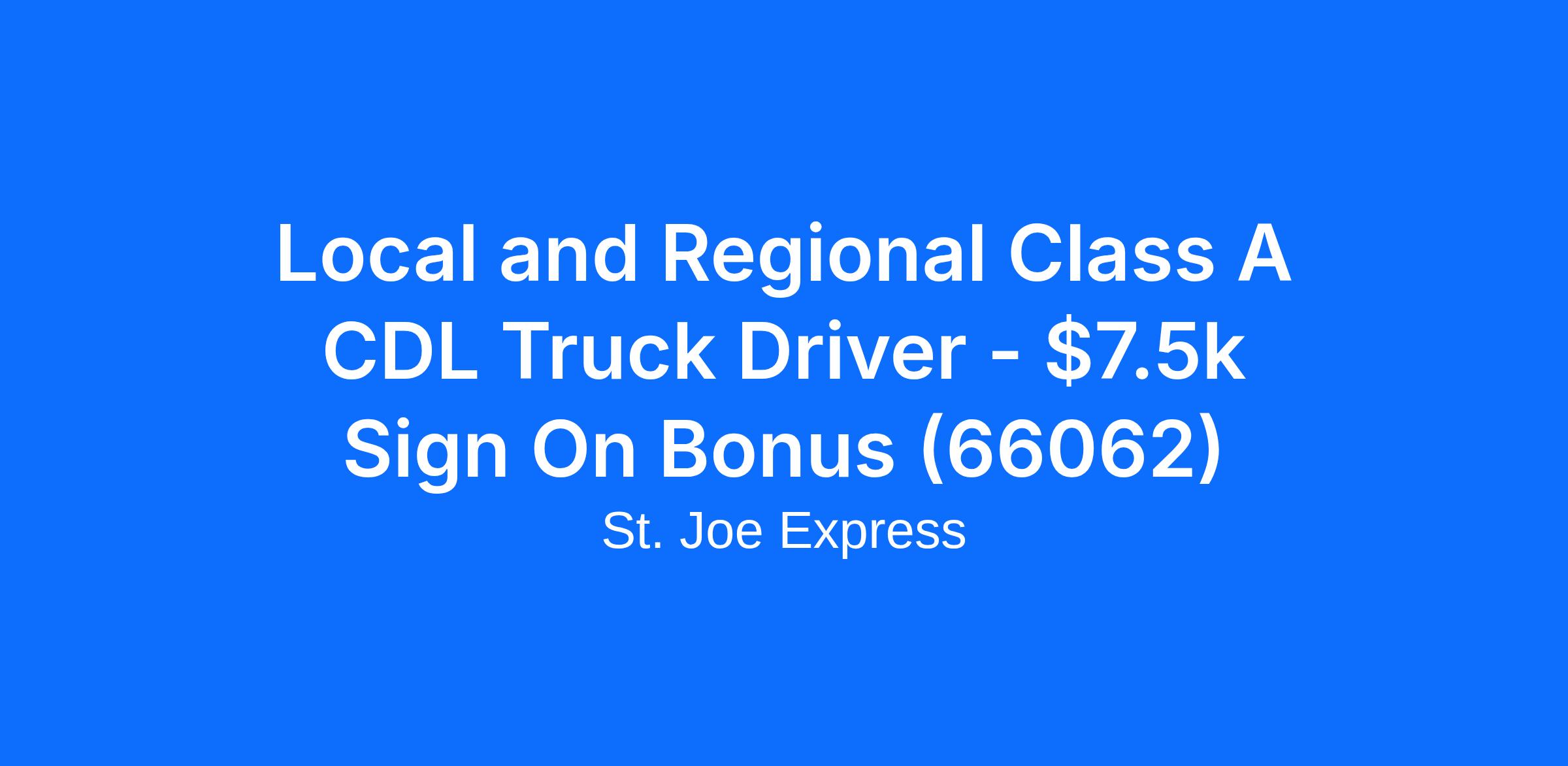Local and Regional Class A CDL Truck Driver - $7.5k Sign On Bonus (66062)