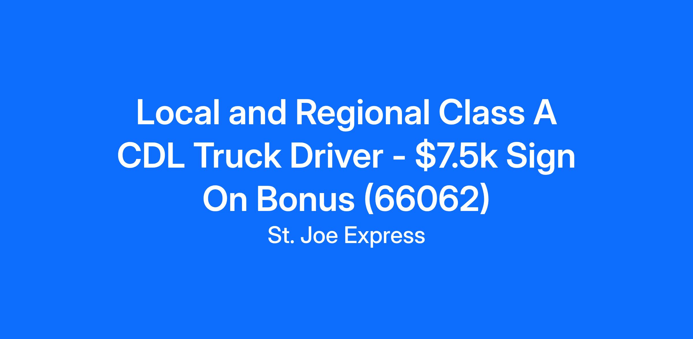 Local and Regional Class A CDL Truck Driver - $7.5k Sign On Bonus (66062)