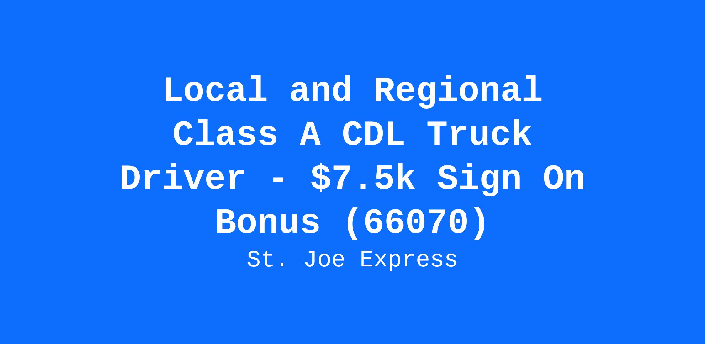 Local and Regional Class A CDL Truck Driver - $7.5k Sign On Bonus (66070)