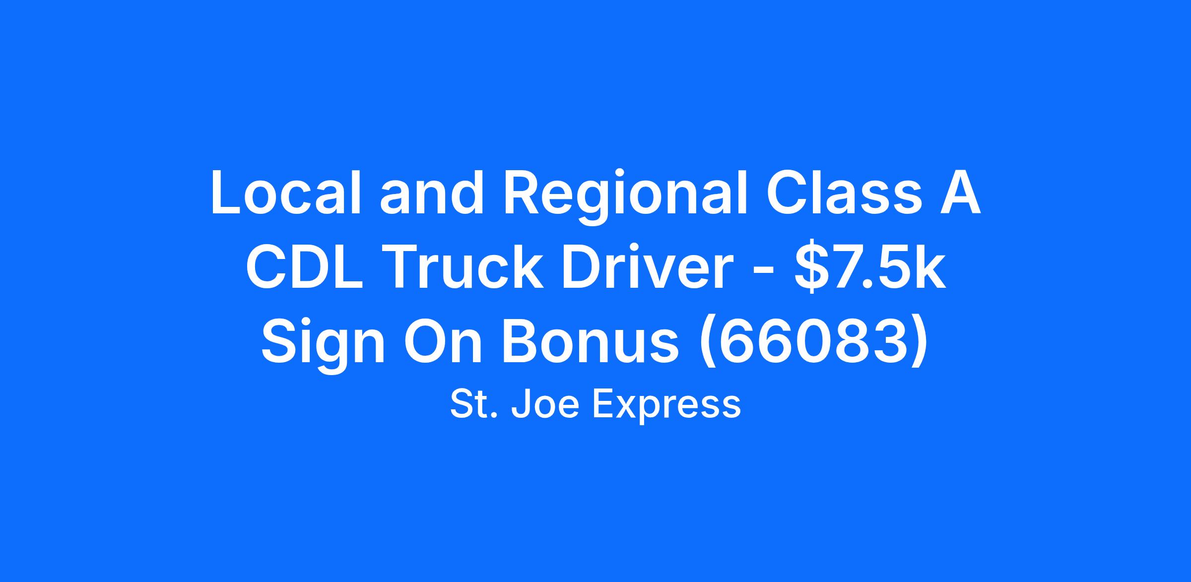 Local and Regional Class A CDL Truck Driver - $7.5k Sign On Bonus (66083)