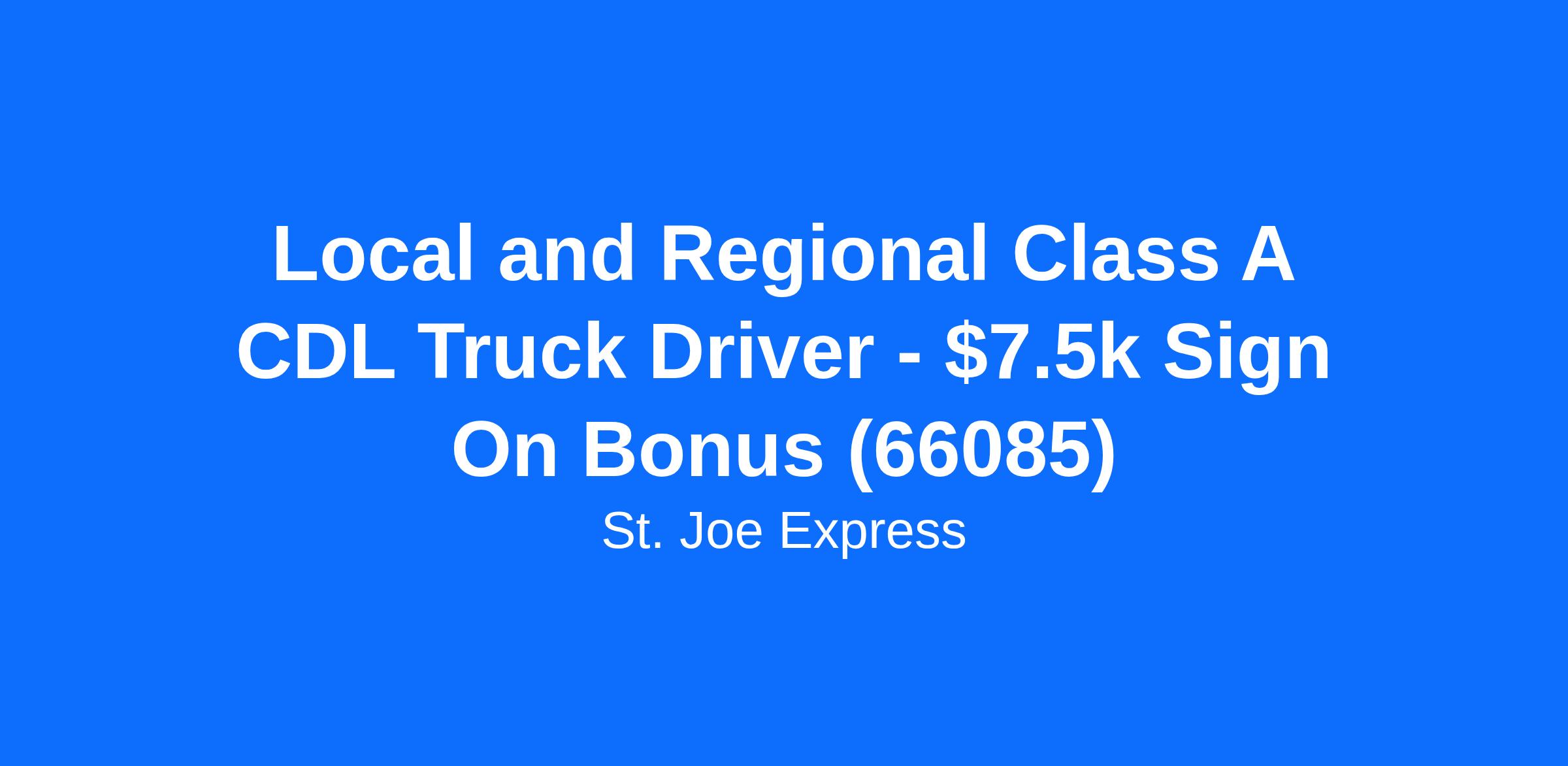 Local and Regional Class A CDL Truck Driver - $7.5k Sign On Bonus (66085)