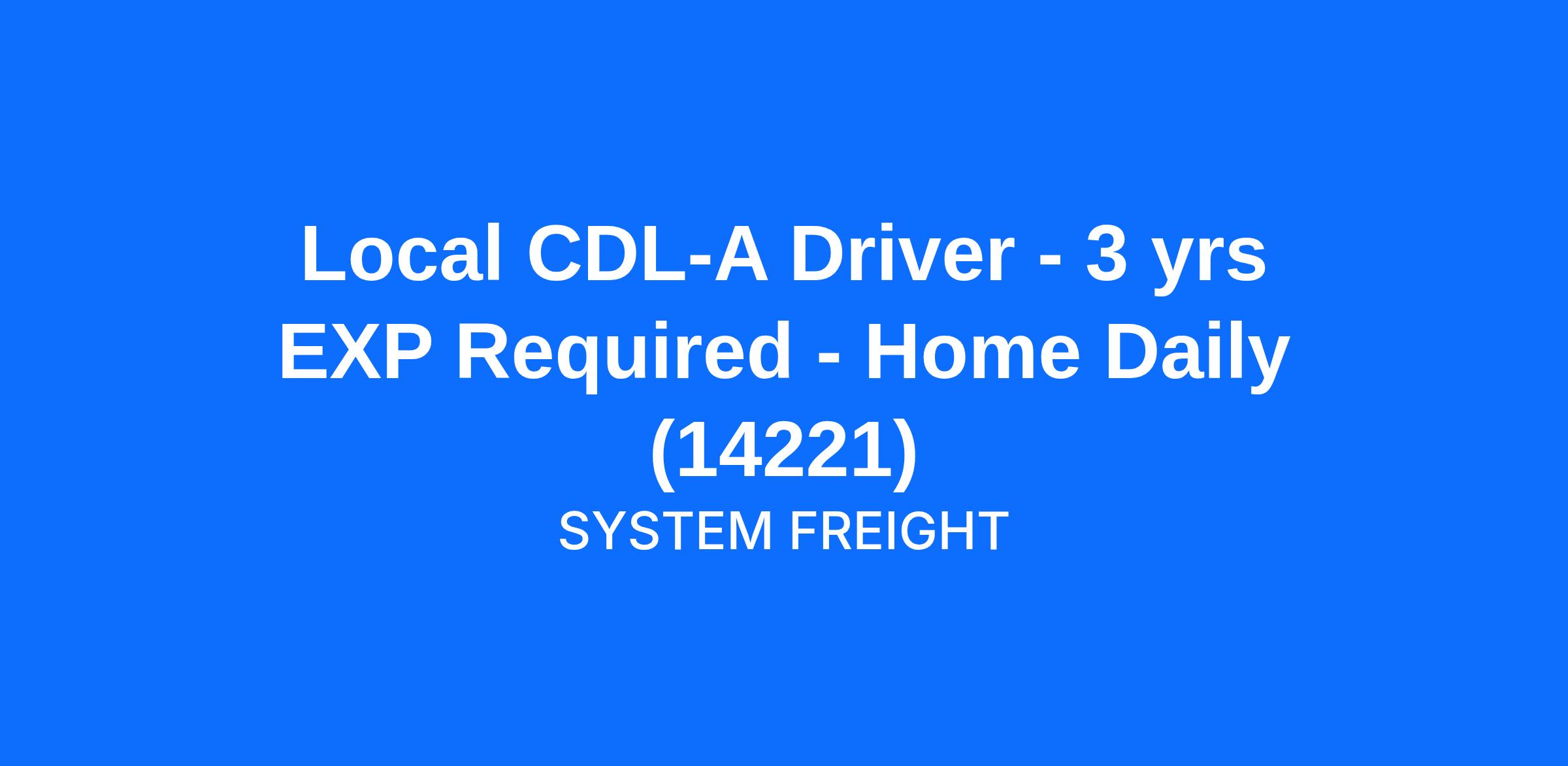 Local CDL-A Driver - 3 yrs EXP Required - Home Daily (14221)