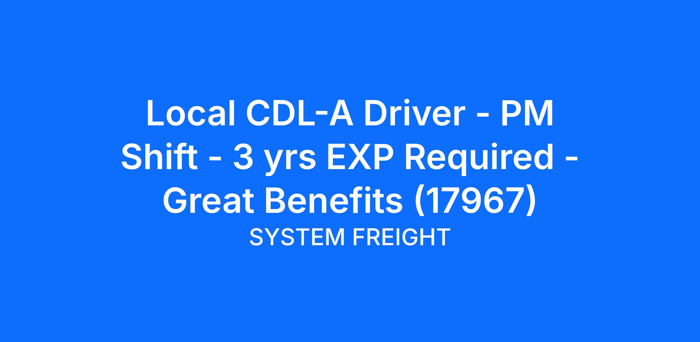 Local CDL-A Driver - PM Shift - 3 yrs EXP Required - Great Benefits (17967)