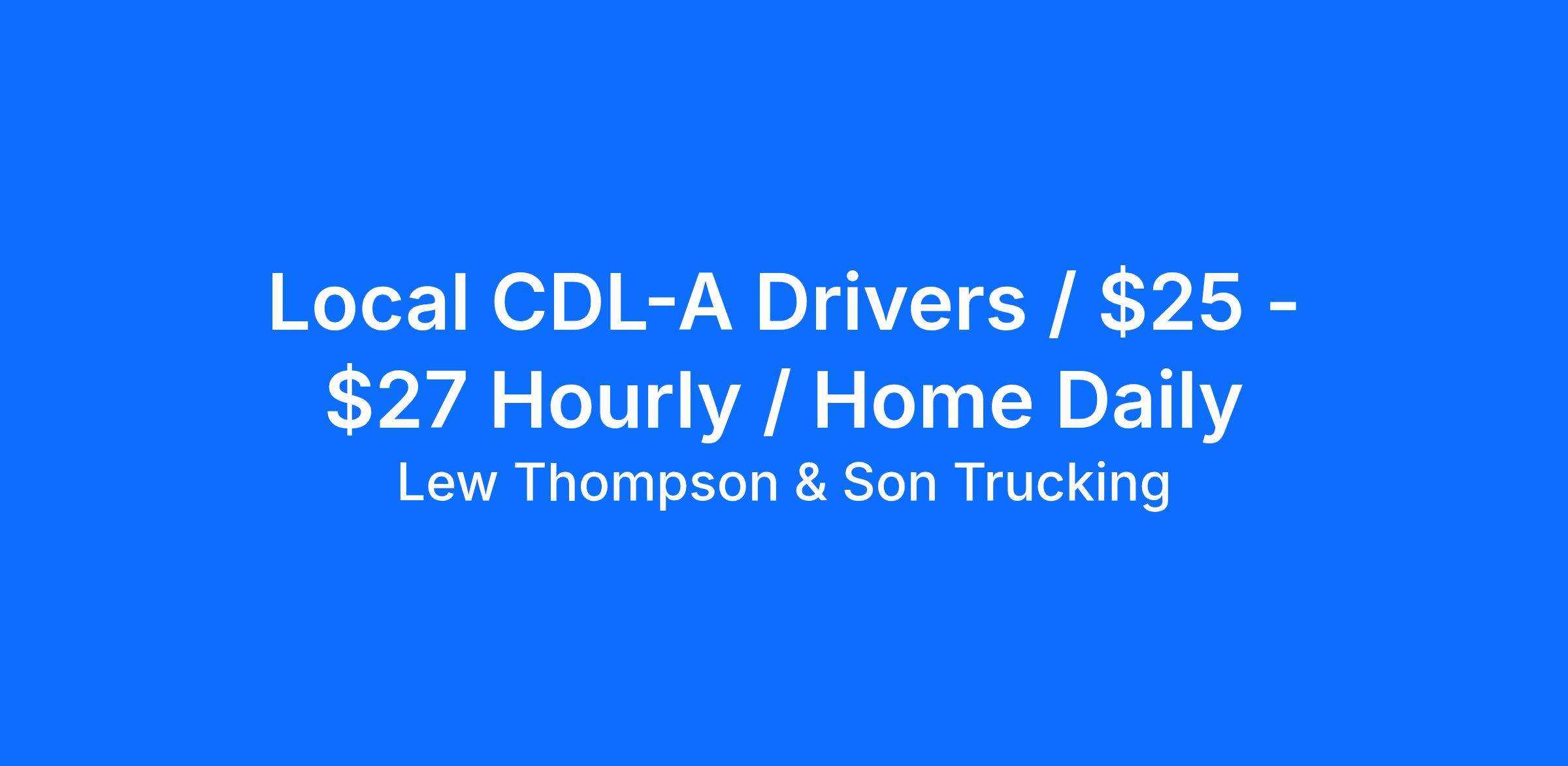 Local CDL-A Drivers / $25 - $27 Hourly / Home Daily