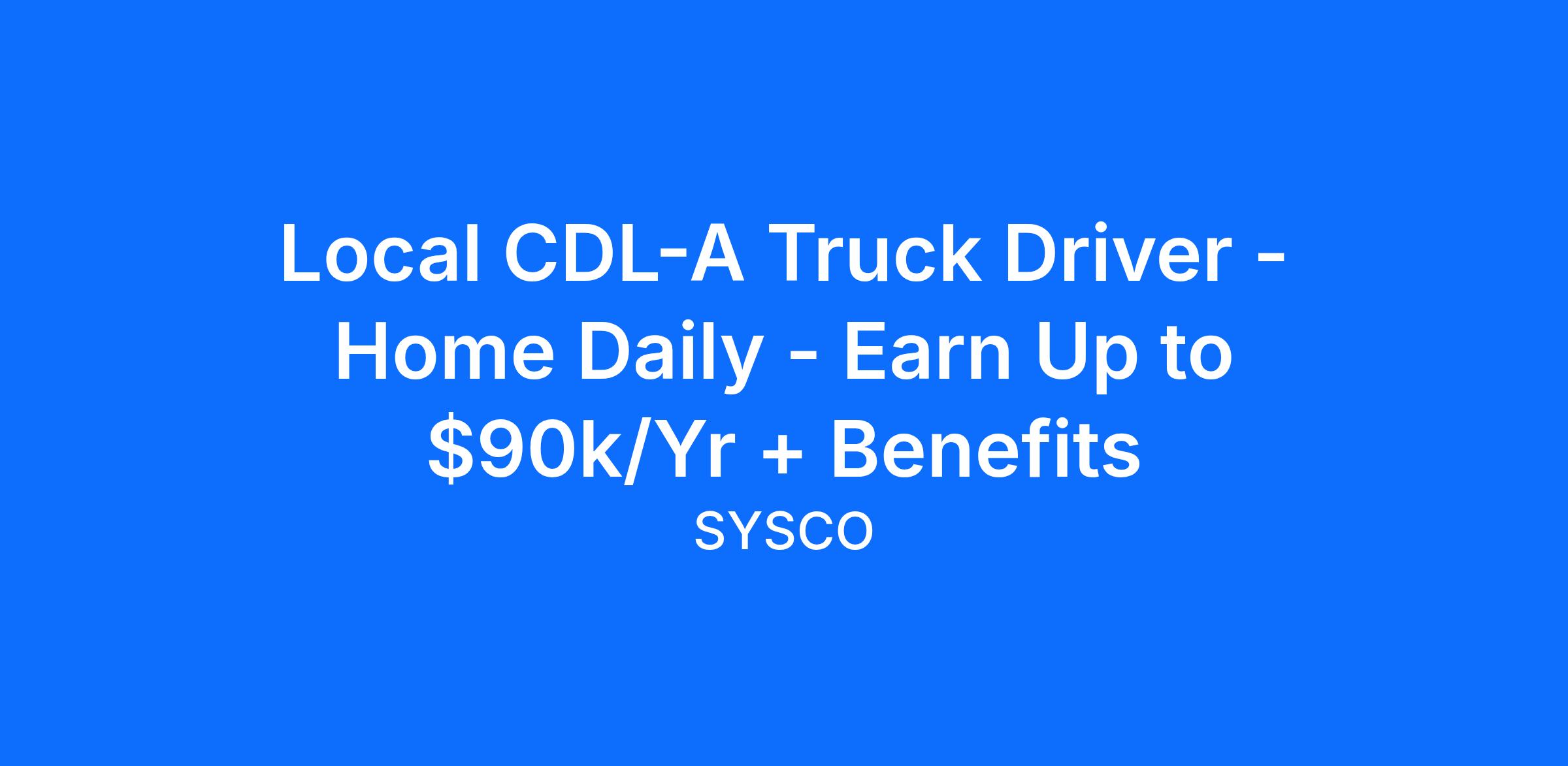 Sysco has immediate job openings for CDL-A local delivery truck drivers who have a passion for delivering outstanding customer service and bringing a smile to the faces of restaurant customers in your community.