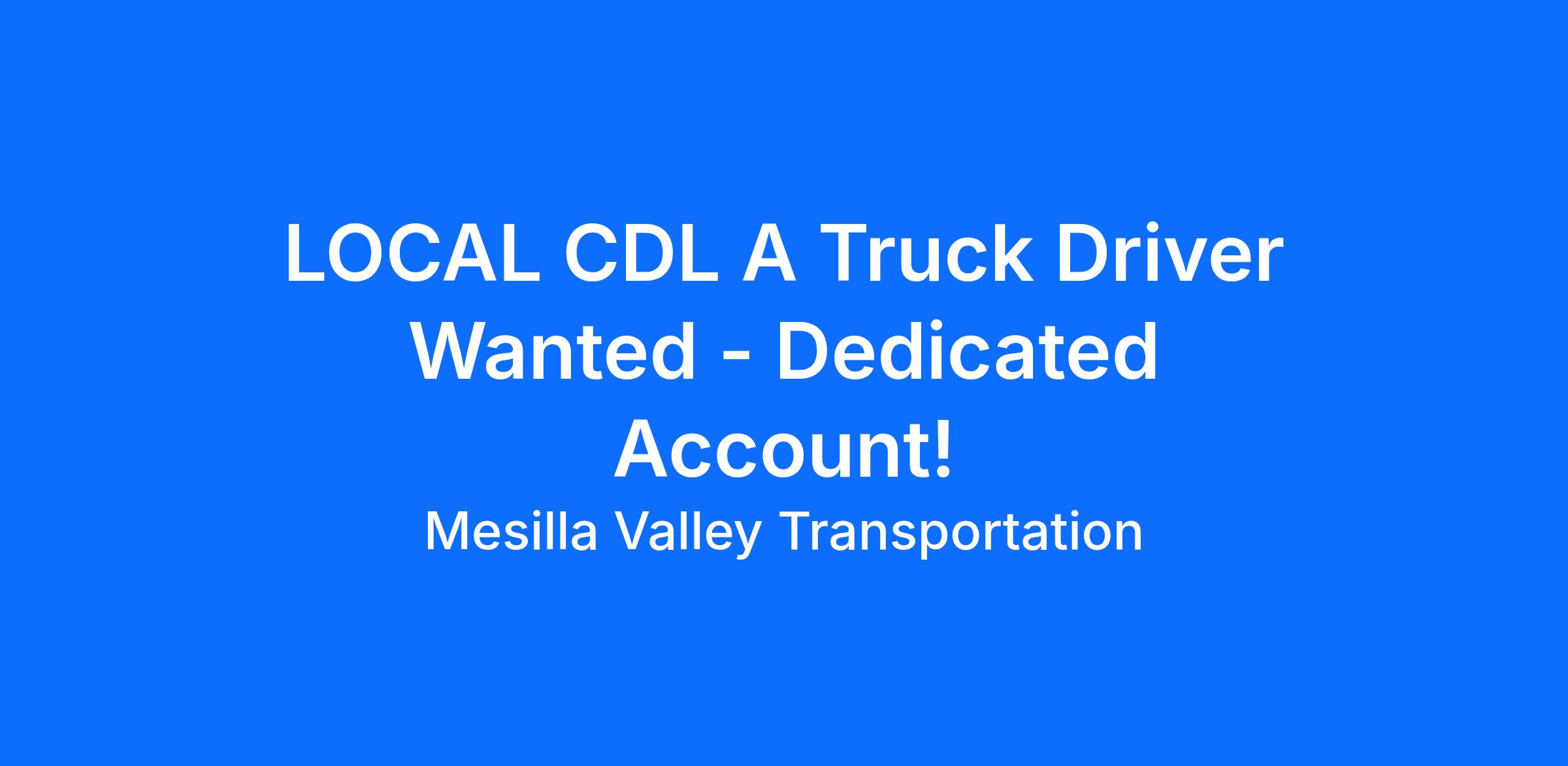 LOCAL CDL-A Truck Drivers Wanted For A Dedicated Account!