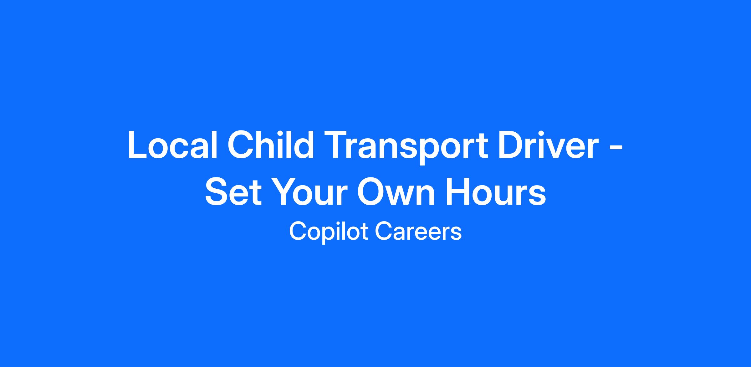 Local Child Transport Driver - Set Your Own Hours