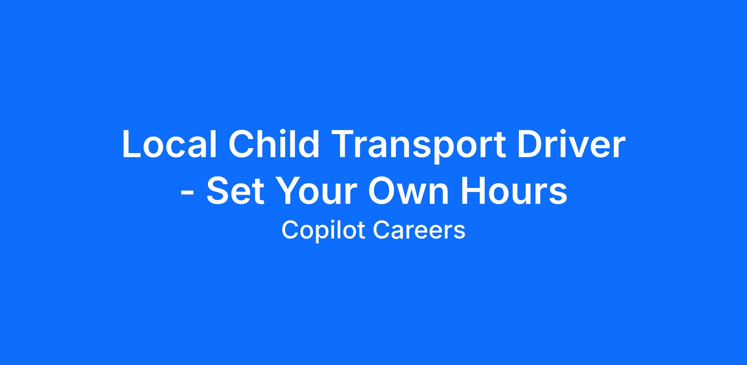 Local Child Transport Driver - Set Your Own Hours