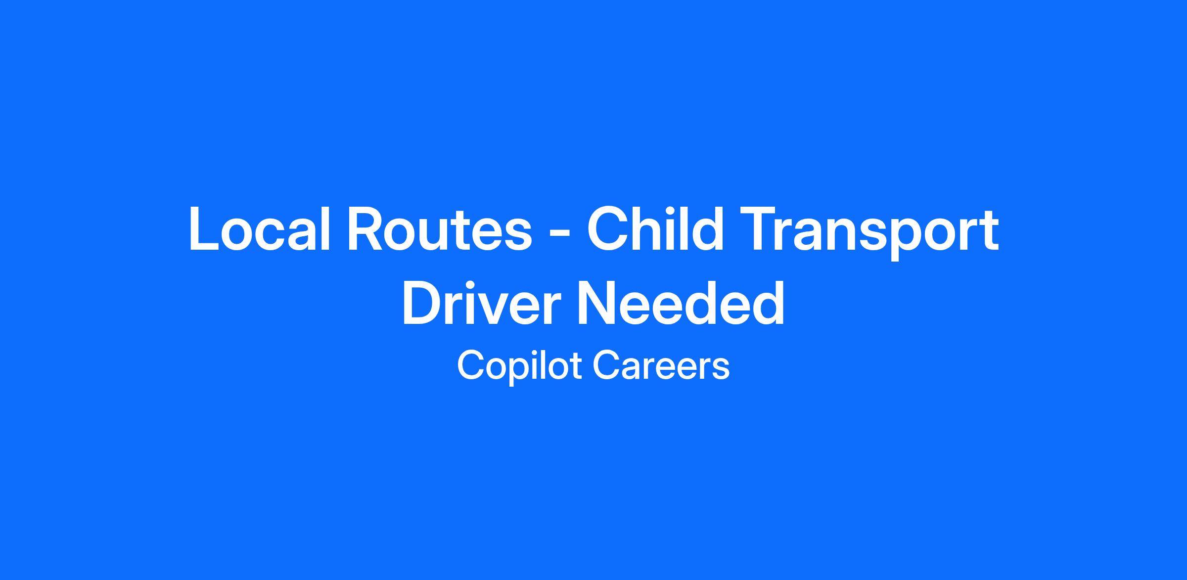 Local Routes - Child Transport Driver Needed