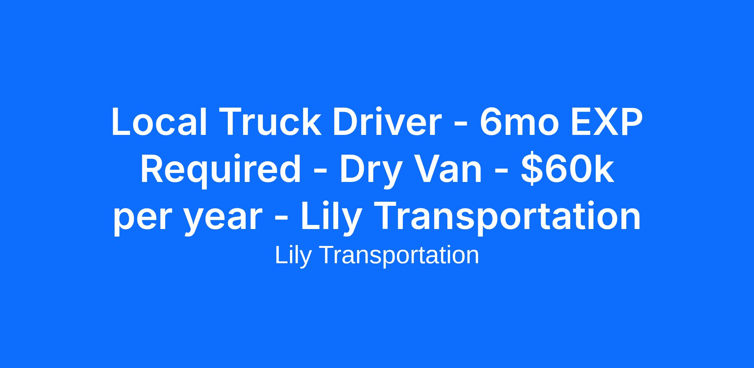 Local Truck Driver - 6mo EXP Required - Dry Van - $60k per year - Lily Transportation