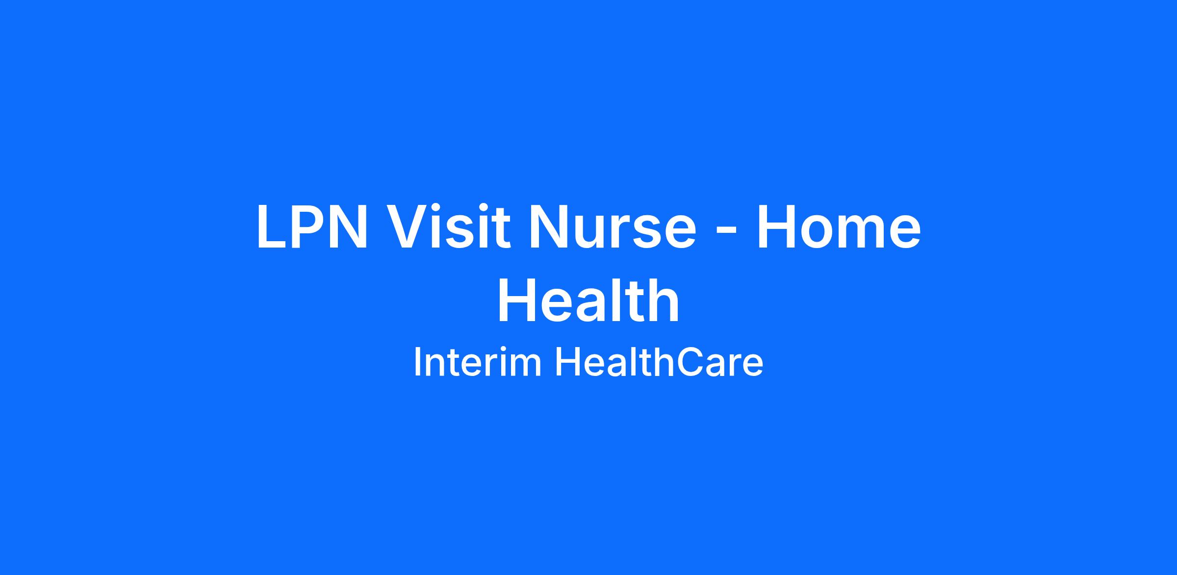 As aLicensed Practical Nurse (LPN)Visit Nurseyou will be called to care when you're needed most. As part of Interim Healthcare Home Health, you'll support a full range of patient services to bring comfort and dignity to our clients.