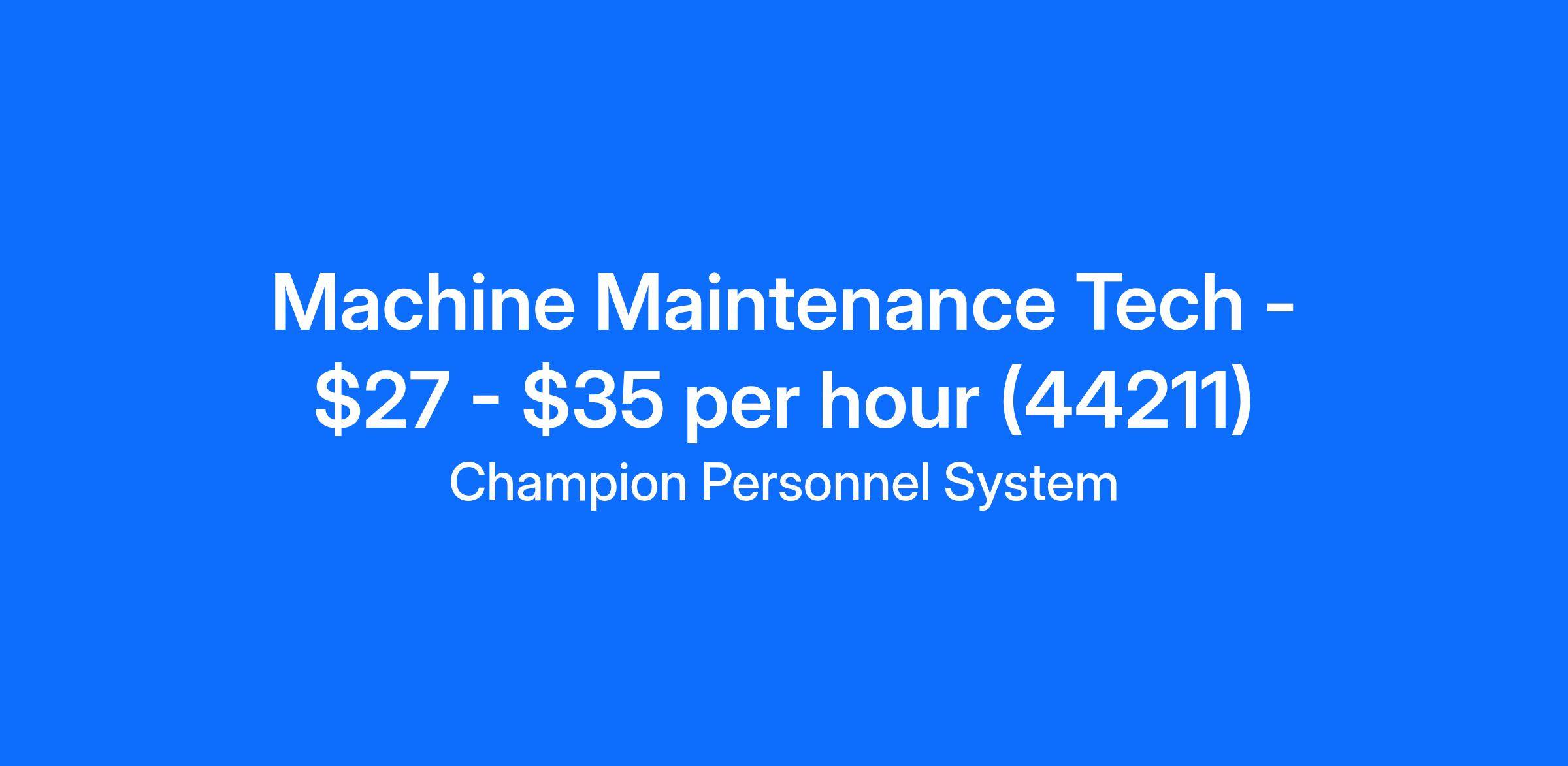 Job Title: Machine Maintenance Tech (Direct Hire)