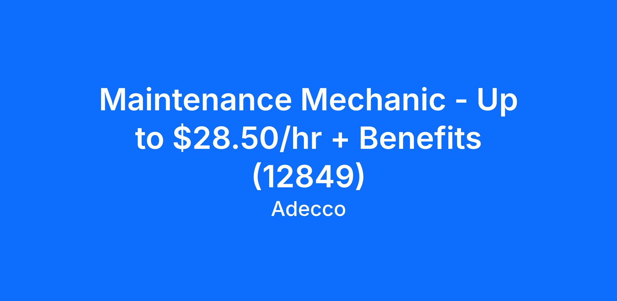 Maintenance Mechanic - Up to $28.50/hr + Benefits (12849)