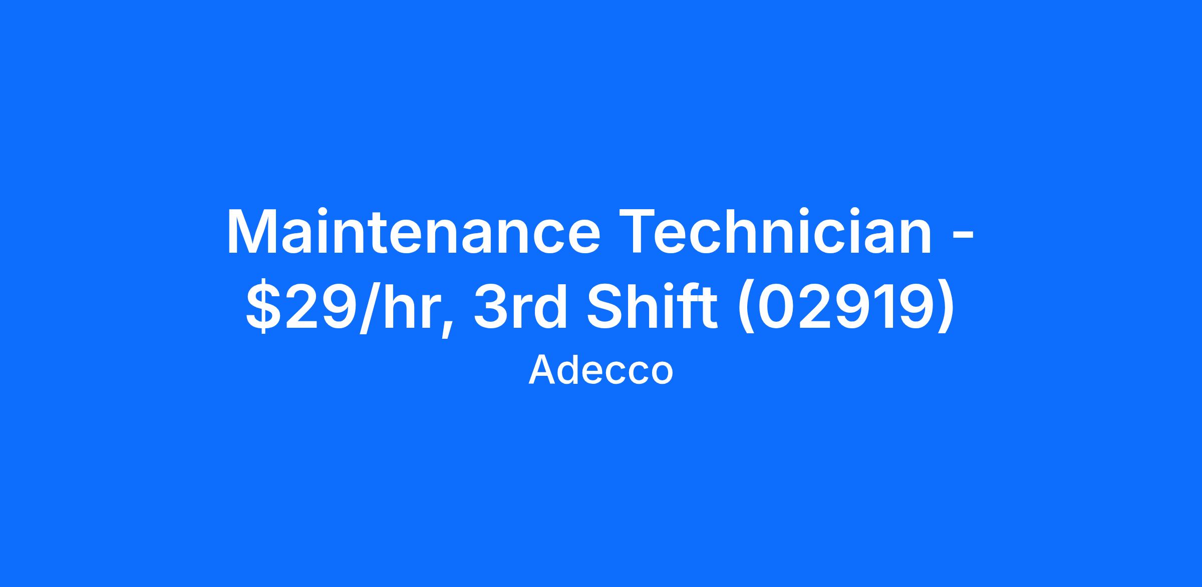 Maintenance Technician - $29/hr, 3rd Shift (02919)