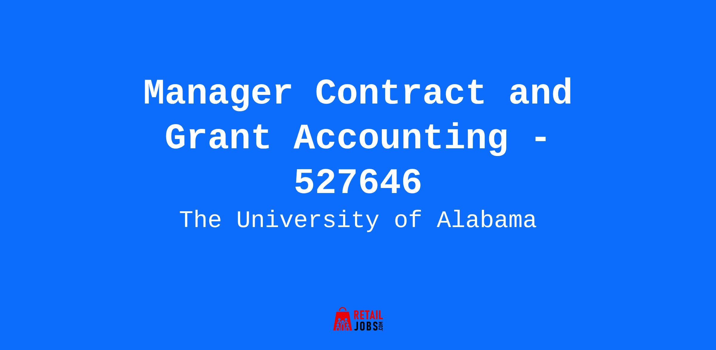 *Pay Grade/Pay Range: *Minimum: $68,500 - Midpoint: $89,100 (Salaried E11) *Department/Organization: *702202 - Contract and Grant Accounting *Normal Work Schedule: *Monday - Friday 8:00am to 5:00pm *Note to Applicants:* Position is eligible for remote work subject to University [policy](https://nam11.safelinks.protection.outlook.com/?url=https%3A%2F%2Fsecure2.compliancebridge.com%2Fuat%2Fpublic%2FgetdocUA.php%3Ffile%3D177&data=05%7C01%7Cbemoses%40ua.edu%7Cdaae37ce5ace4fb97d1908db151e131d%7C2a00728ef0d040b4a4e8ce433f3fbca7%7C0%7C0%7C638126991130208660%7CUnknown%7CTWFpbGZsb3d8eyJWIjoiMC4wLjAwMDAiLCJQIjoiV2luMzIiLCJBTiI6Ik1haWwiLCJXVCI6Mn0%3D%7C3000%7C%7C%7C&sdata=Djgz%2BB2%2BxSpyNMdy0xBMc6Aol4Rzzxp5pYEZwV5rZ6U%3D&reserved=0). *Job Summary: *The Manager Contract and Grant Accounting oversees all aspects of post-award financial accounting for the Office for Contract & Grant Accounting to ensure compliance, accuracy, and strategic financial management. The Manager is critical in providing management and supervision of CGA personnel, developing and delivering training to various stakeholders, interpreting sponsor and University requirements, and implementing continuous improvement. *Additional Department Summary: *Contract & Grant Accounting (CGA) manages all post-award accounting and financial administration of externally sponsored projects, including award set-up and management in the University’s accounting systems, cash management, general accounting functions, sponsor invoicing, reporting, audit activities, effort reporting, and compliance with federal, state, local, private, sponsor, and University rules and regulations. In the last fiscal year, CGA managed $606 million in active ongoing activities. This is a critical position in support of current and future sponsored programs growth. Under the direction of the Assistant Vice President for Research Finance, the Manager Contract and Grant Accounting oversees all aspects of post-award financial accounting for CGA to ensure compliance, accuracy, and strategic financial management. The Manager Contract and Grant Accounting will foster collaborative relationships across the organization including Sponsored Programs, Compliance, Finance & Accounting, Procurement, etc. to ensure the overall long-term success of externally sponsored research and The University of Alabama (UA). Provides day-to-day financial and regulatory oversight of post-award financial activities for externally sponsored projects at UA, responsibility includes mentorship, training, and direct supervision of CGA personnel. Manages key processes including, month-end close, award set-up in the University’s accounting system, effort reporting, financial reporting, letter of credit draws, invoicing, indirect cost returns to colleges/administrative units, and project closeout. Manages key compliance processes including subrecipient risk assessments, subrecipient monitoring, and internal and external audits of sponsored projects. Supports education, outreach, and communication to CGA personnel, researchers, and staff across the University in accordance with federal regulations, University policies, and sponsor requirements. Responsible for collaborating with various University departments and offices in the administration and development of systems designed to monitor effort certification, cost sharing, and fiscal compliance issues (e.g., payroll, accounting, purchasing, and travel). Interaction with outside organizations (both prime sponsors and subrecipients) will be frequent and detailed. Provides advice and assistance to the Assistant Vice President for Research Finance regarding over all financial compliance by the University. Develops and maintains various reports for internal and external reporting. *Required Minimum Qualifications: *Bachelor's degree and six (6) years of accounting experience; OR master's degree and four (4) years of accounting experience; OR Certified Public Accountant (CPA) and four (4) years of accounting experience. *Skills and Knowledge: *Demonstrated interpersonal, verbal, and written communication skills to clearly and effectively communicate and interact with contract and grant accountants, senior leadership, Principal Investigators, administrators, auditors, and sponsors with a customer service perspective. Demonstrated ability to adapt to changing financial regulatory environment. Proficiency with enterprise resource planning (ERP) financial systems (such as PeopleSoft, Banner, Workday, Oracle, or other similar systems), accounting systems, effort reporting systems, electronic research administration systems, and Microsoft Office suite. Adaptable to changing priorities while effectively managing multiple commitments. Critical thinking and problem-solving skills to analyze complex data and develop meaningful solutions to specific problems in collaboration with colleagues; organizational skills to work with changing priorities and demanding workload, and to meet multiple and variable priorities and deadlines. In-depth knowledge of federal and state costing policies, federal uniform requirements (2 CFR 200),generally accepted accounting principles, cost allocation methods, and accounting policies and procedures in an academic environment, with direct experience in contract and grant fiscal administration for externally sponsored funding. Proven record of collegial communication and cooperative initiatives with colleagues in sponsored programs, contracting, research compliance, finance, faculty, and administration. Proven success in directing the work of financial staff and providing effective management of significant external funding. *Preferred Qualifications: *Ten (10) or more years of experience working in contract and grant accounting in a research-intensive institution of higher education. At least seven (7) years of professional accounting, audit, and/or financial compliance experience. CRA or CFRA certification or CPA license. Experience p