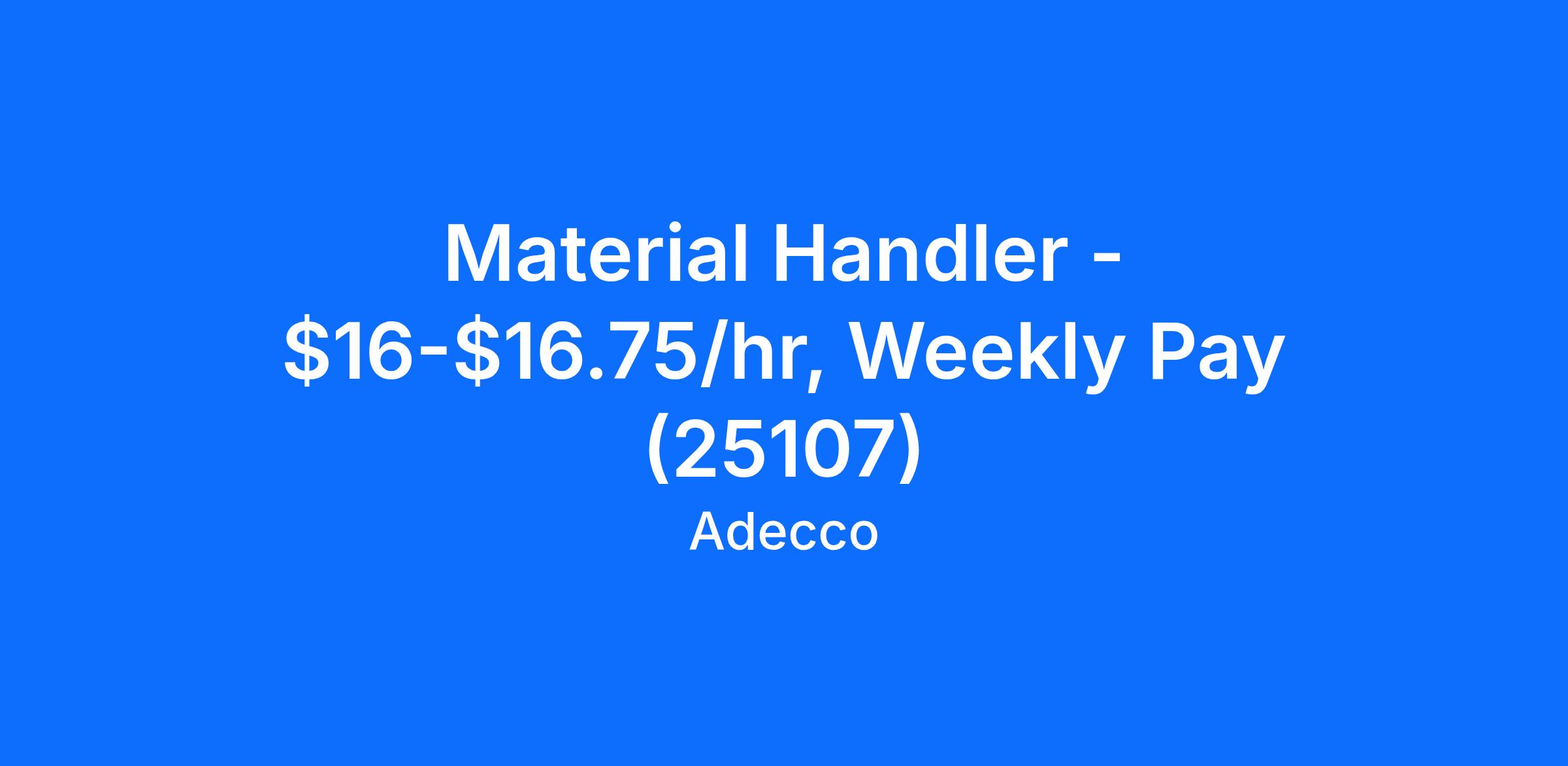 Material Handler - $16-$16.75/hr, Weekly Pay (25107)