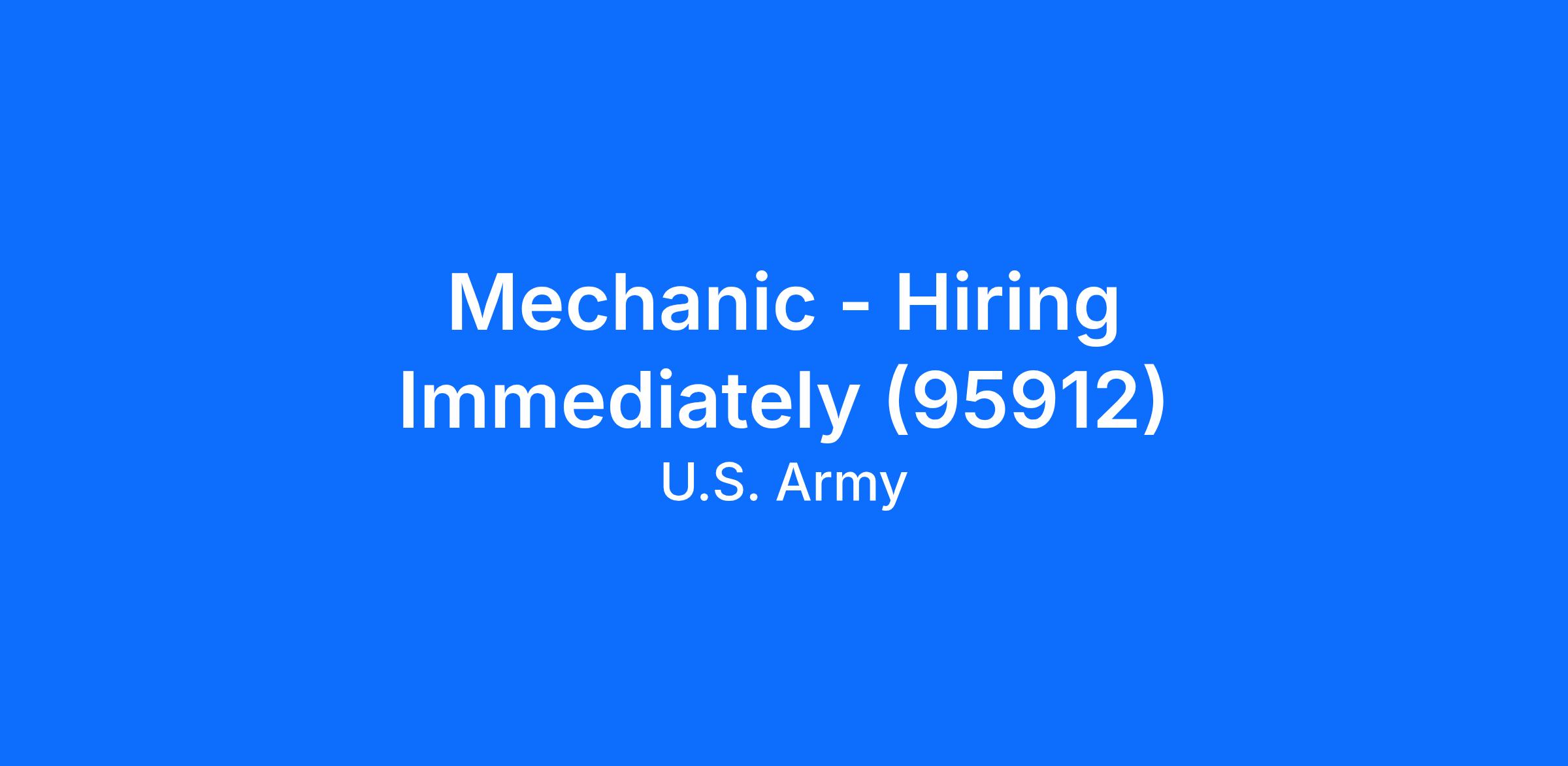 Mechanic - Hiring Immediately (95912)