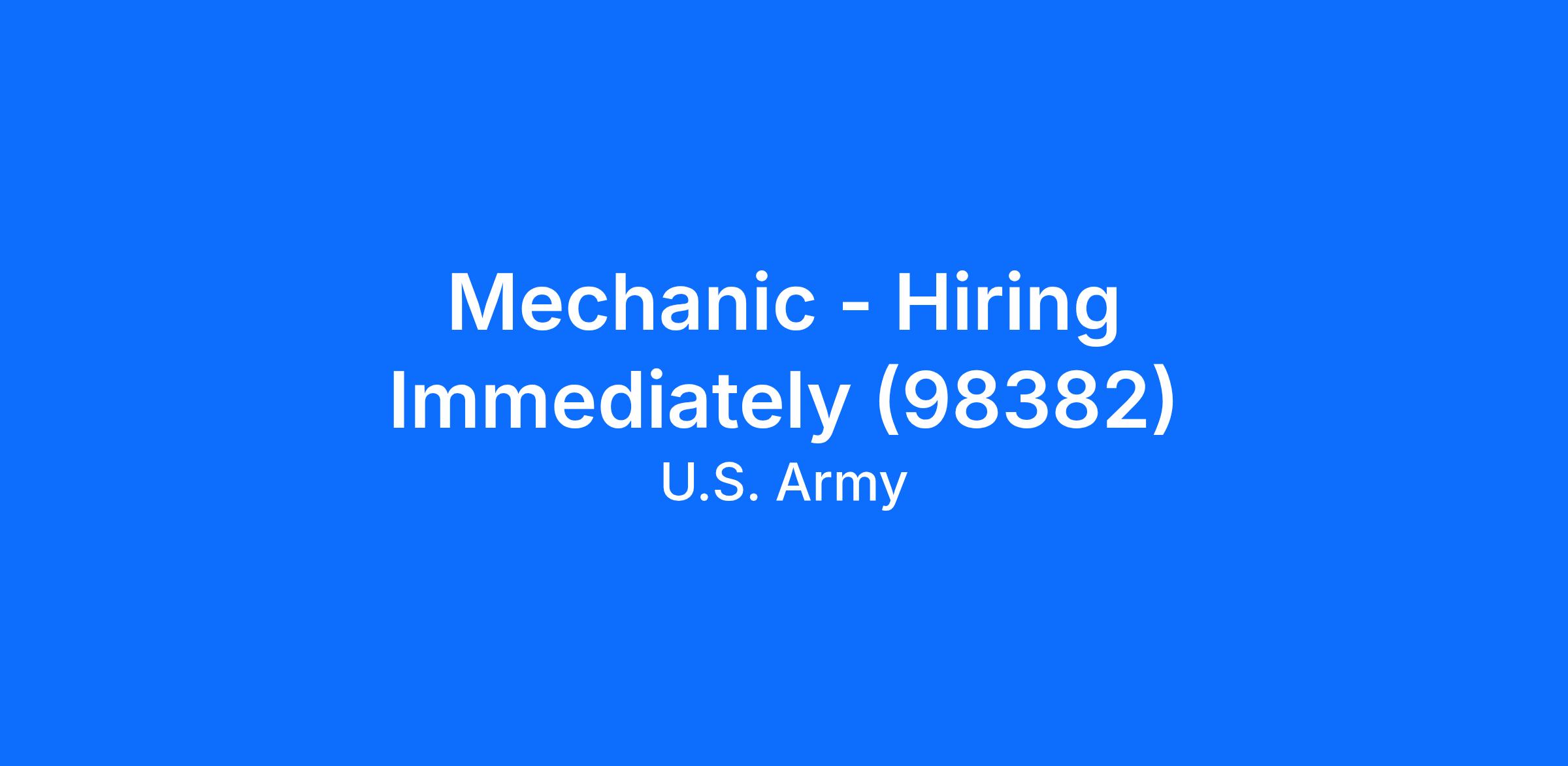 Mechanic - Hiring Immediately (98382)