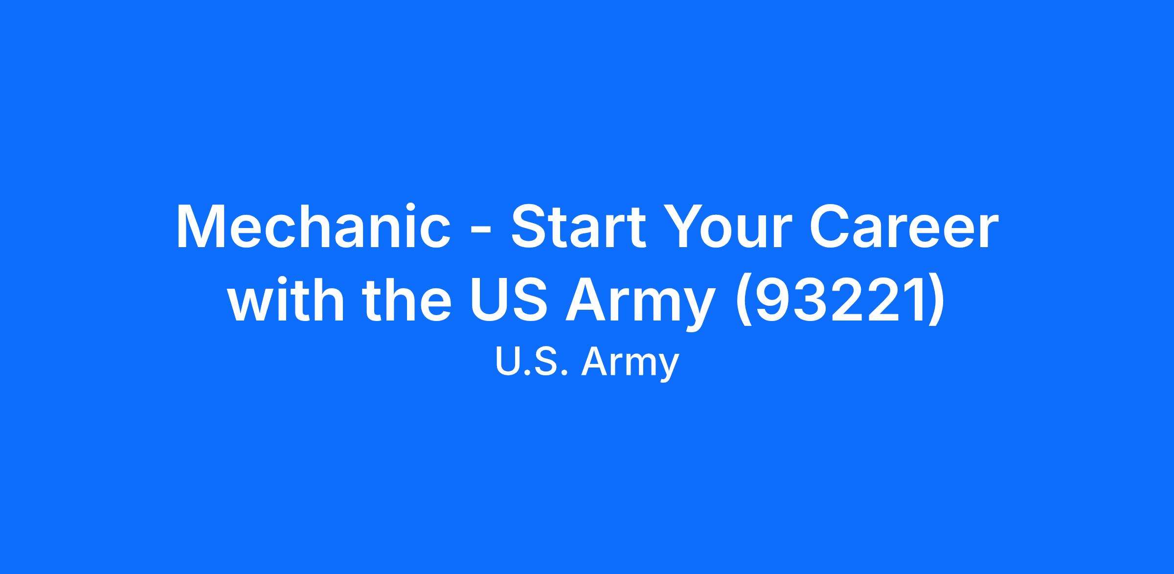 Mechanic - Start Your Career with the US Army (93221)