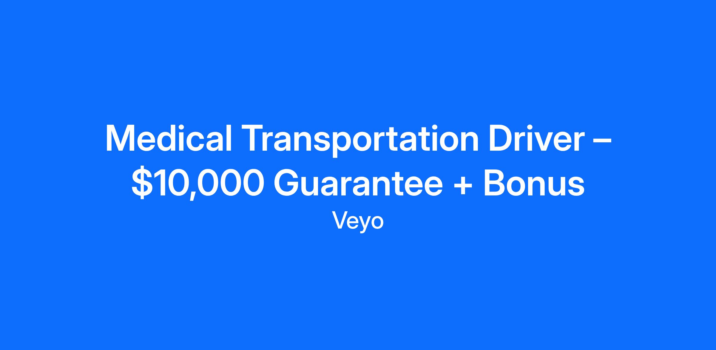 Medical Transportation Driver – $10,000 Guarantee + Bonus