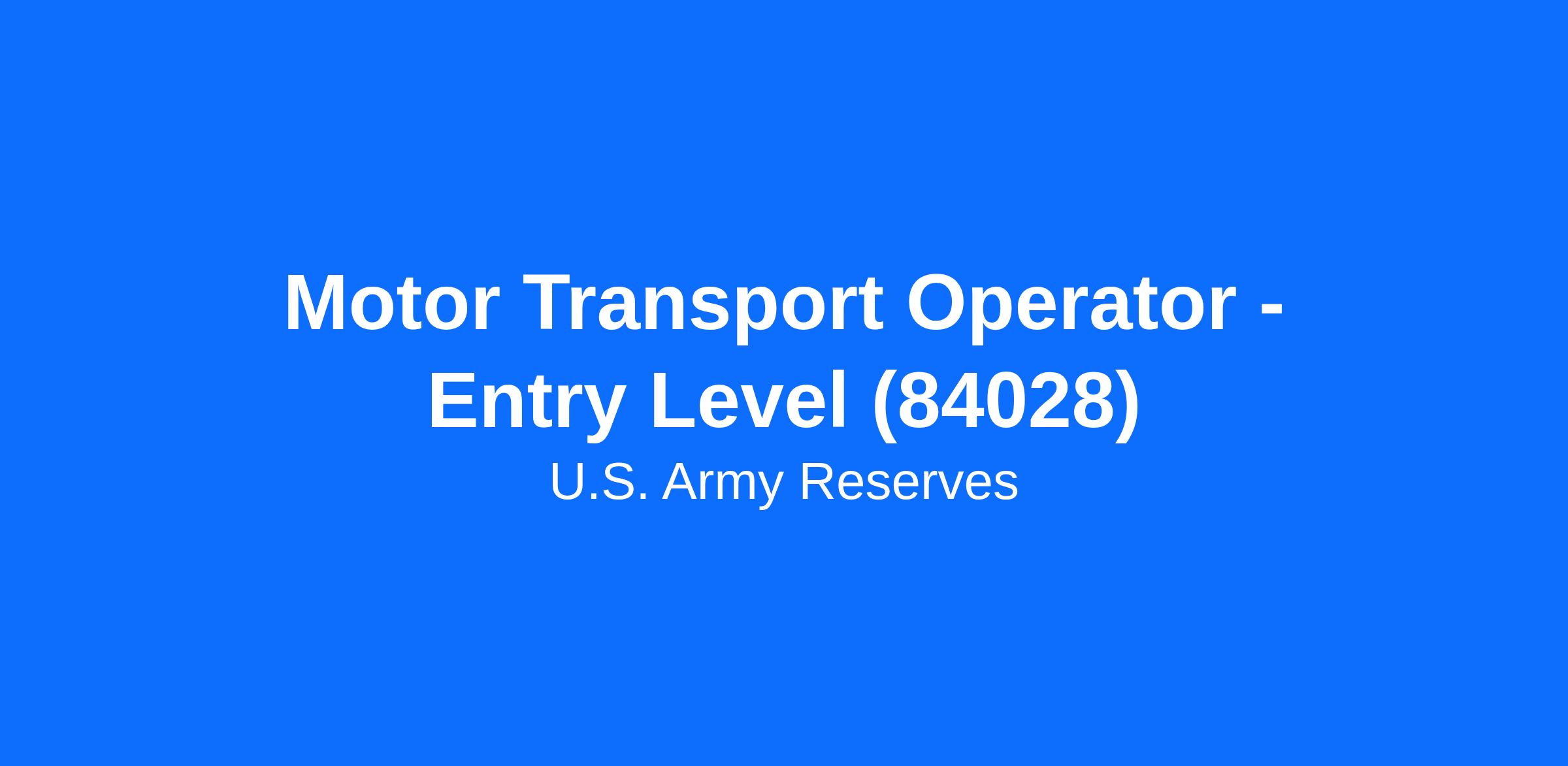 Motor Transport Operator - Entry Level (84028)