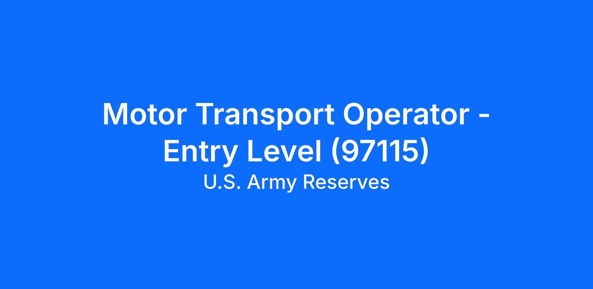Motor Transport Operator - Entry Level (97115)
