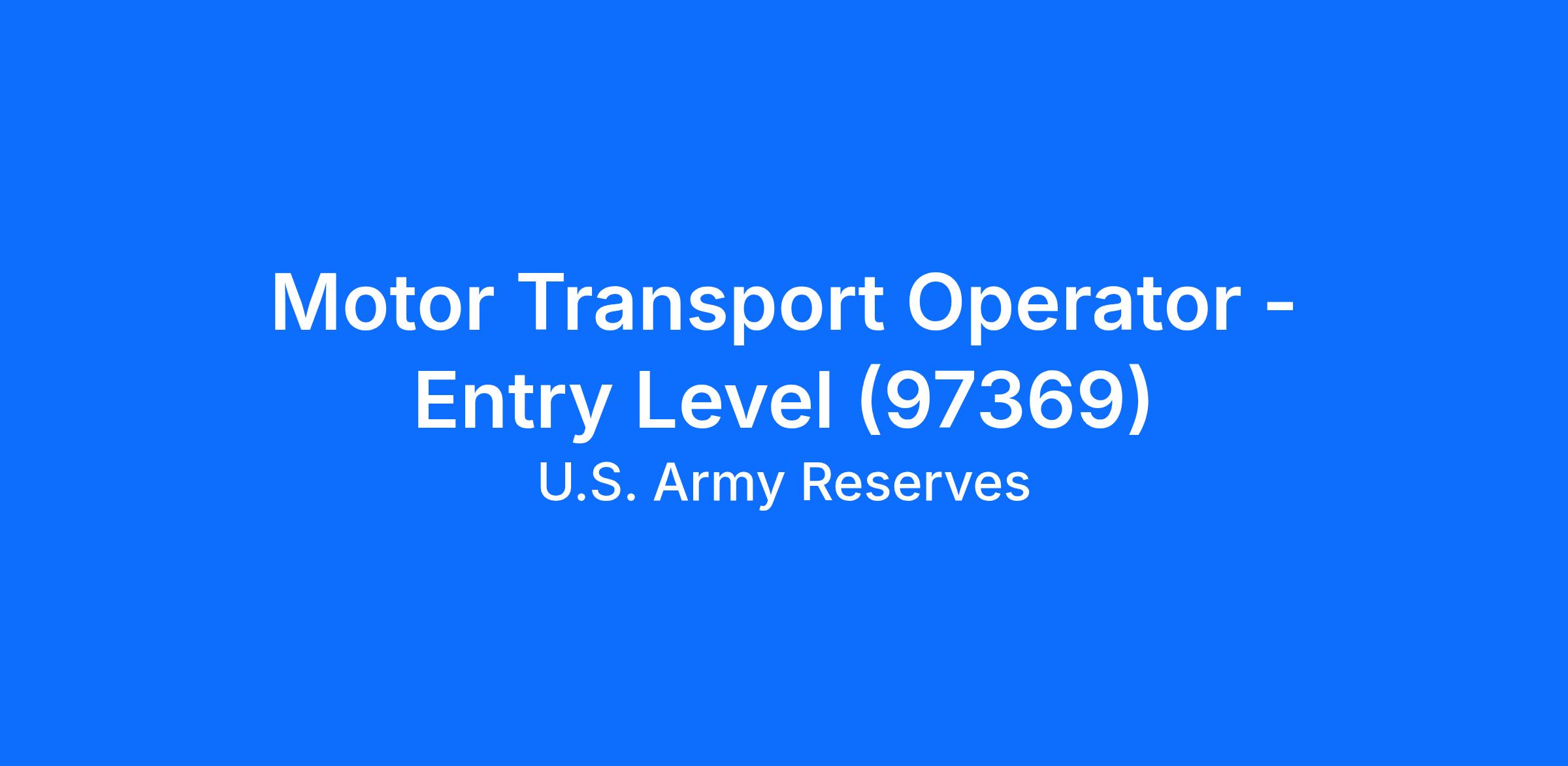 Motor Transport Operator - Entry Level (97369)