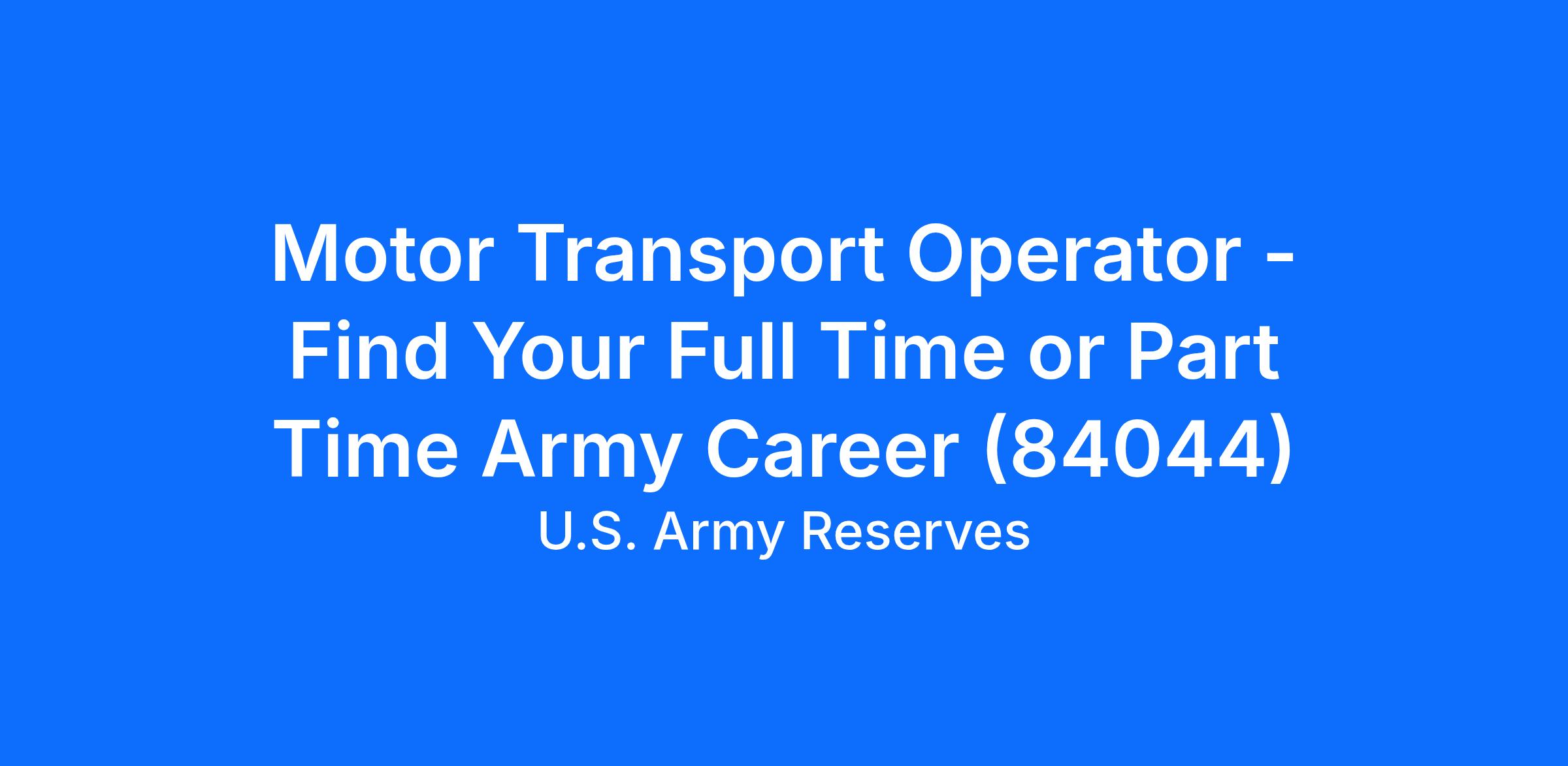 Motor Transport Operator - Find Your Full Time or Part Time Army Career (84044)