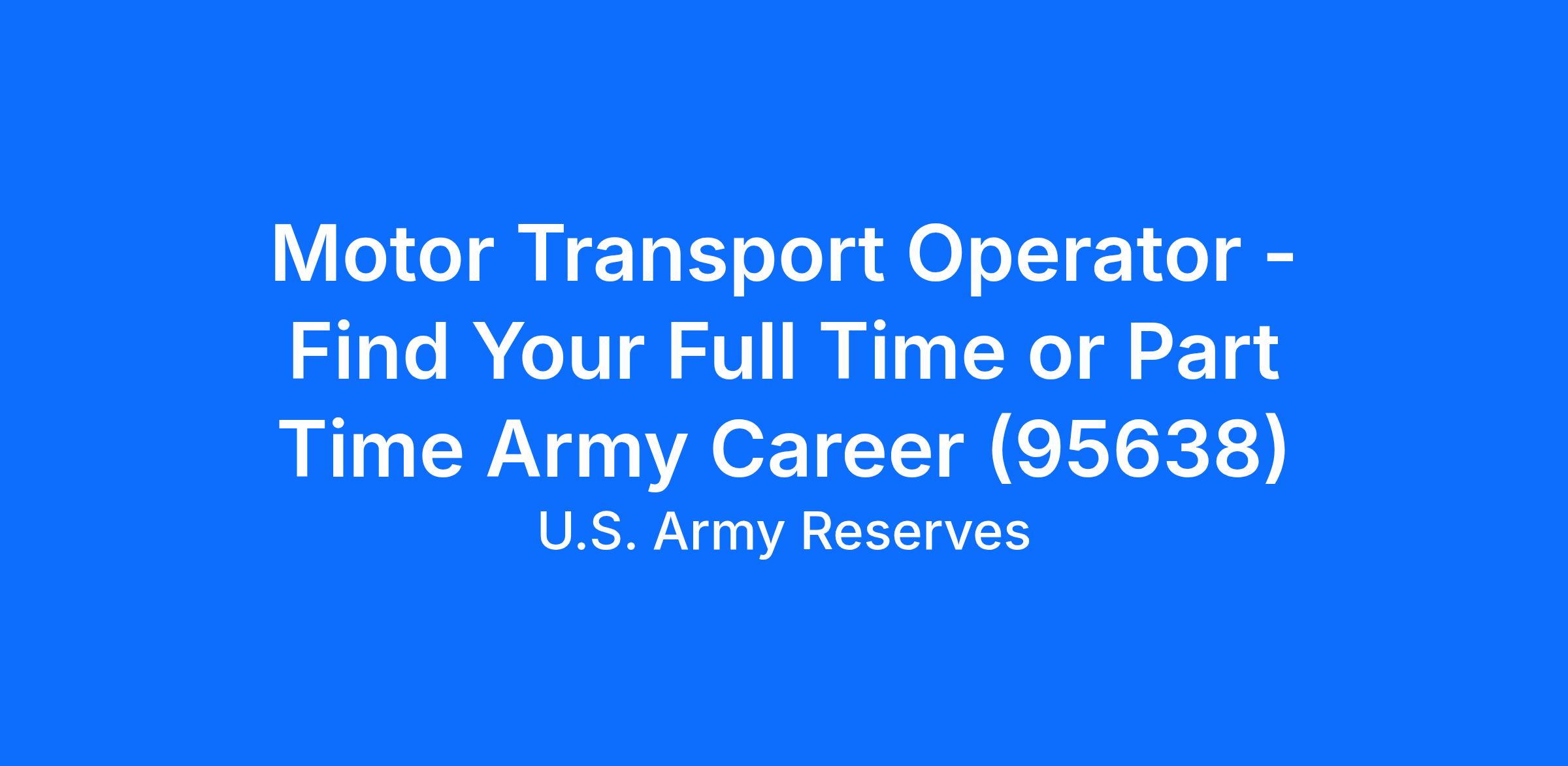 Motor Transport Operator - Find Your Full Time or Part Time Army Career (95638)