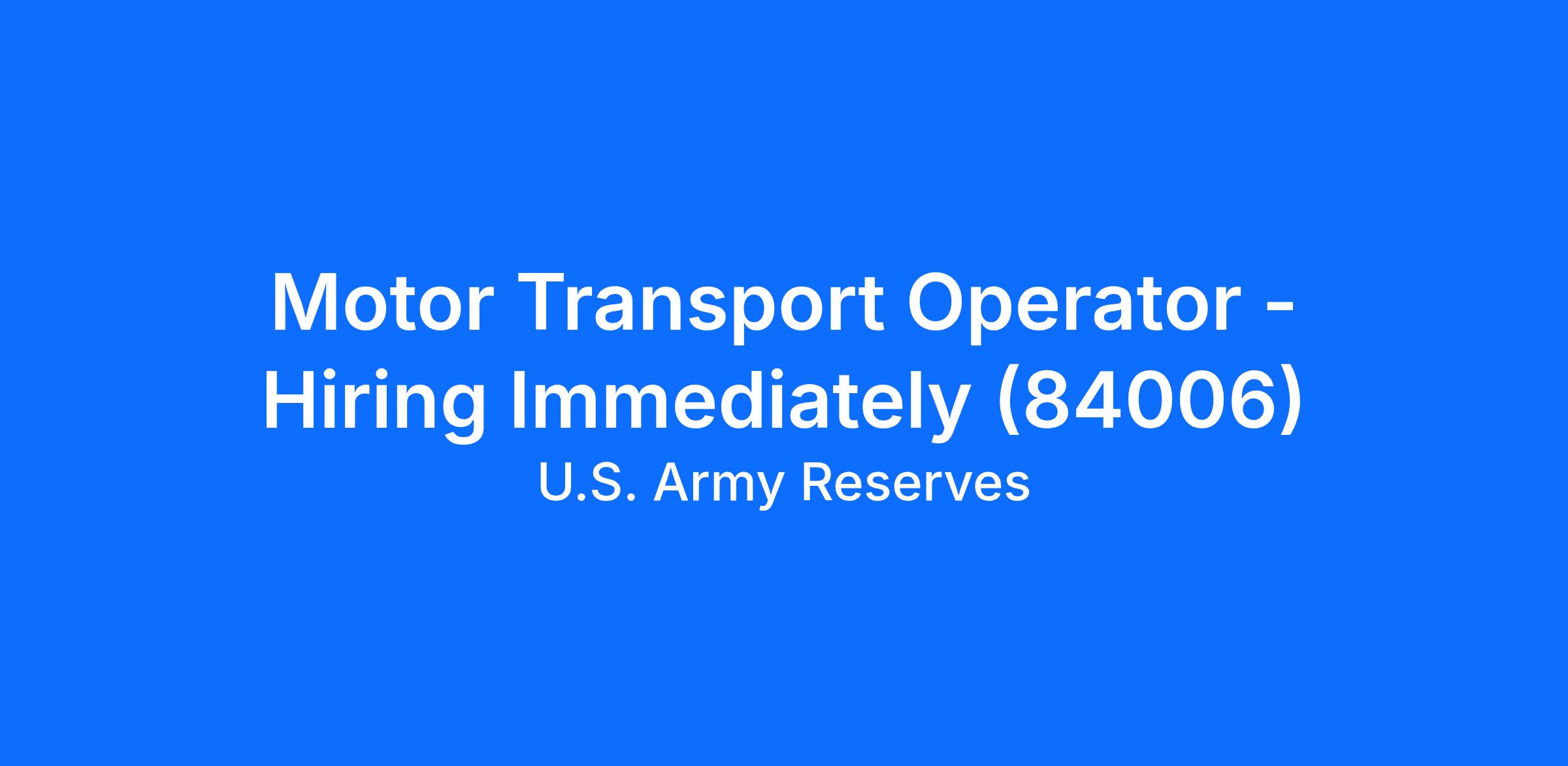 Motor Transport Operator - Hiring Immediately (84006)