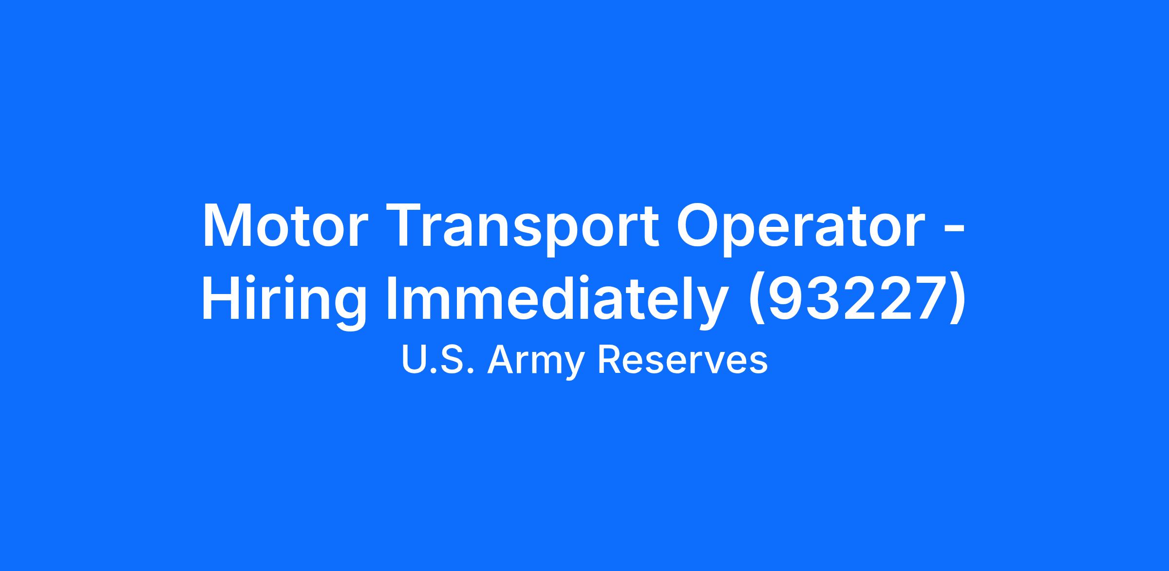 Motor Transport Operator - Hiring Immediately (93227)