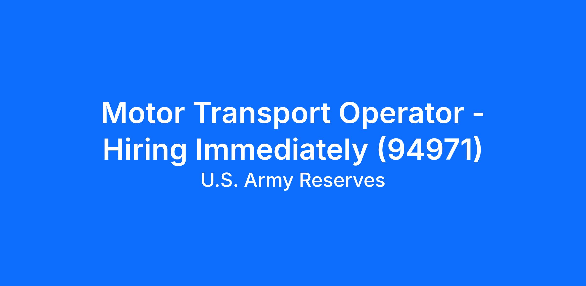 Motor Transport Operator - Hiring Immediately (94971)