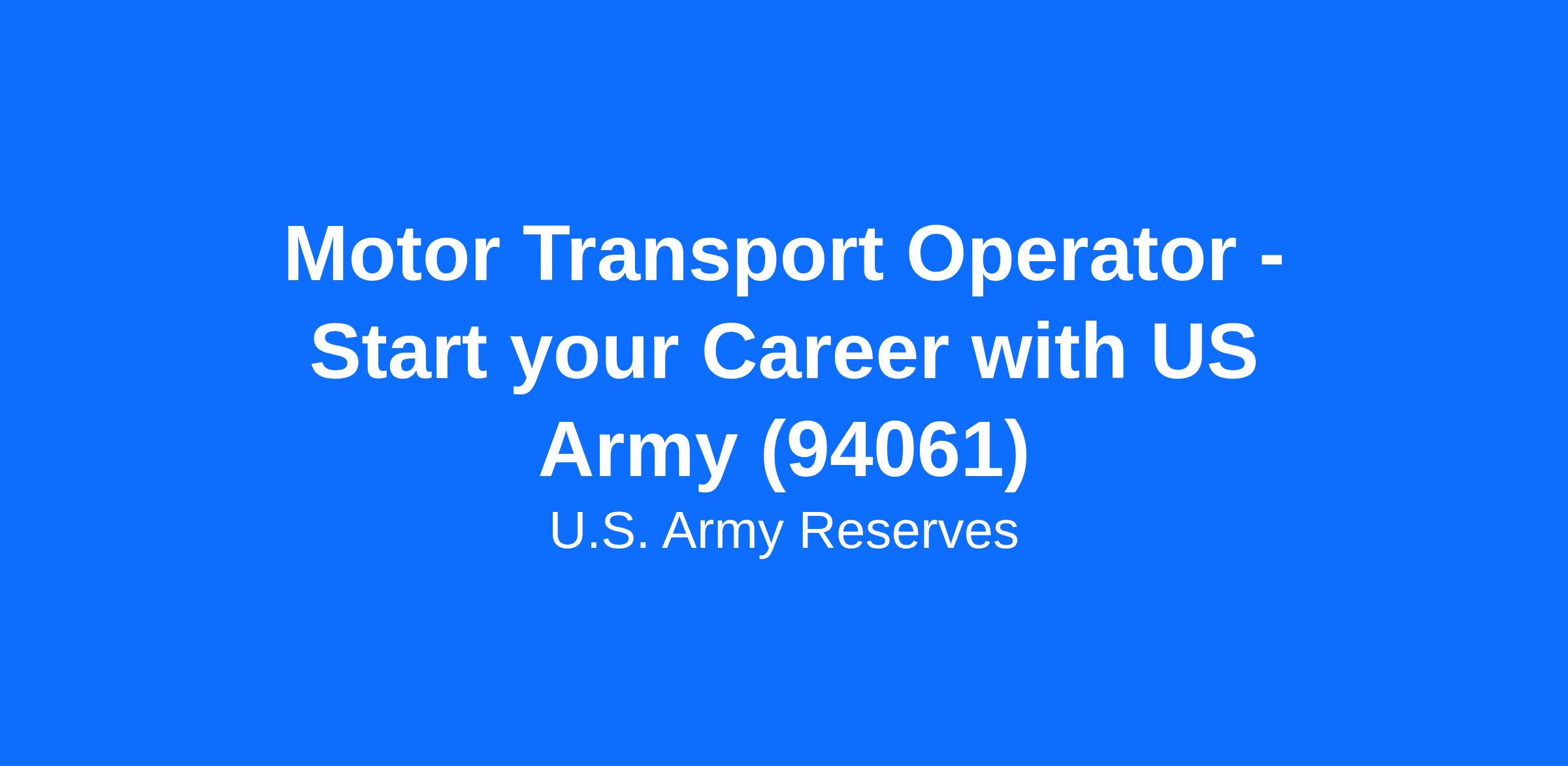 Motor Transport Operator - Start your Career with US Army (94061)