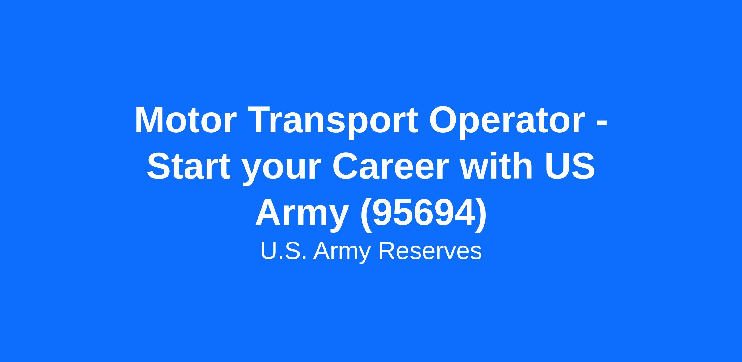 Motor Transport Operator - Start your Career with US Army (95694)