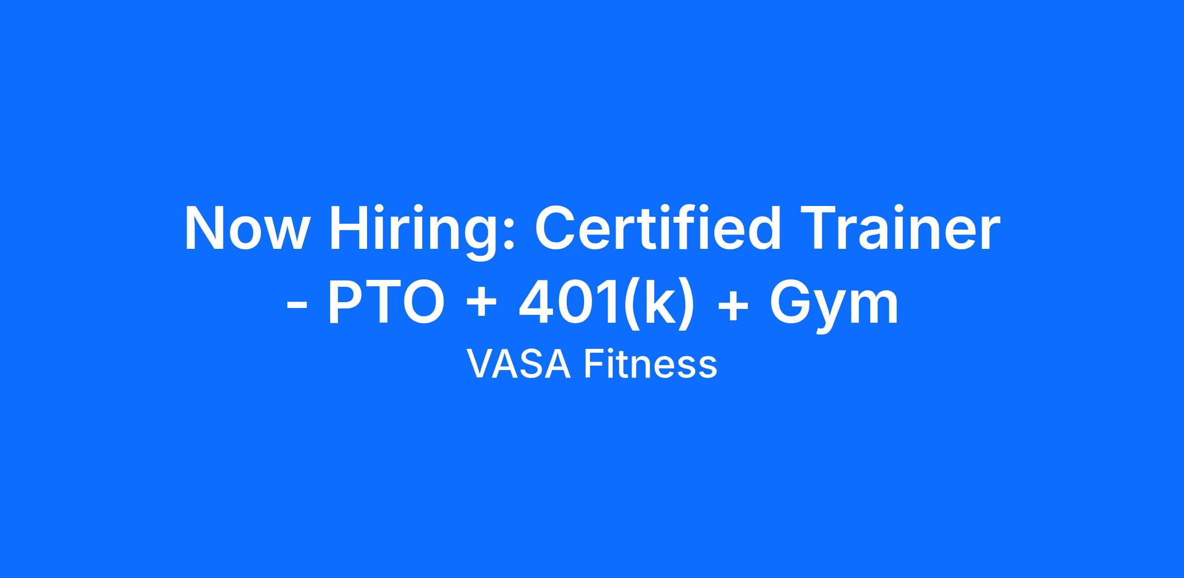 Now Hiring: Certified Trainer - PTO + 401(k) + Gym