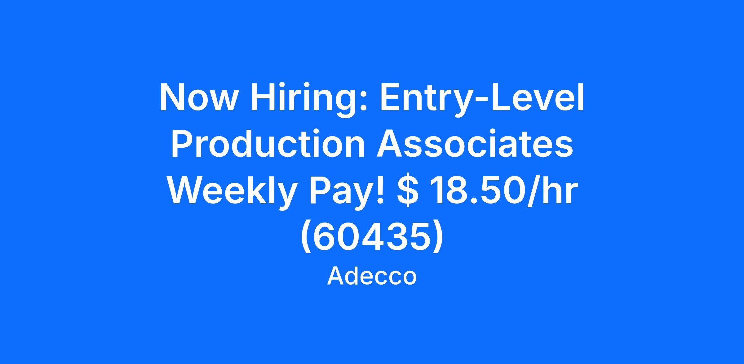 Now Hiring: Entry-Level Production Associates Weekly Pay! $ 18.50/hr (60435)