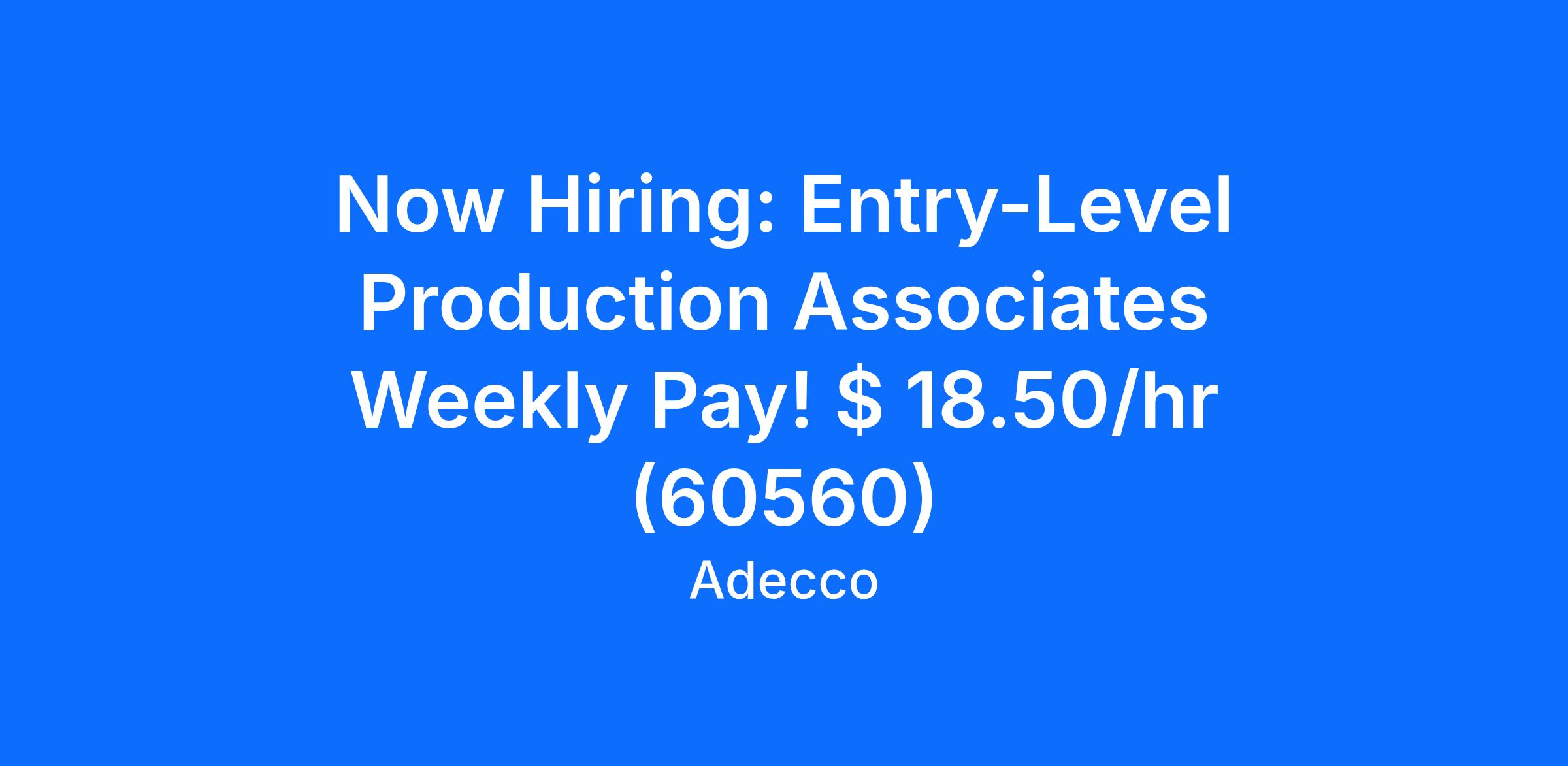 Now Hiring: Entry-Level Production Associates Weekly Pay! $ 18.50/hr (60560)