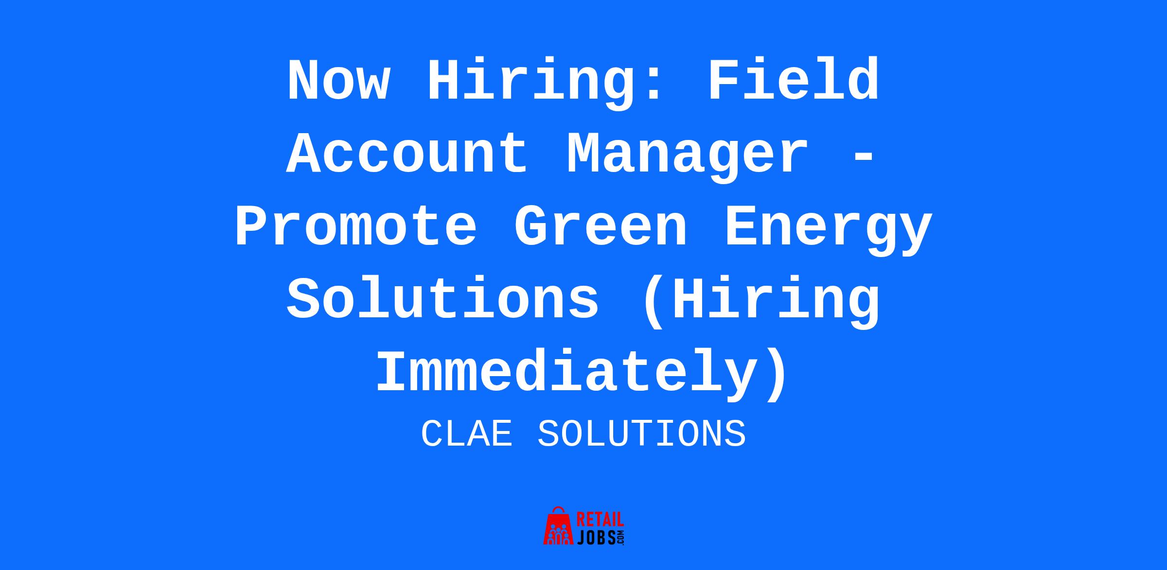 Now Hiring: Field Account Manager - Promote Green Energy Solutions (Hiring Immediately)