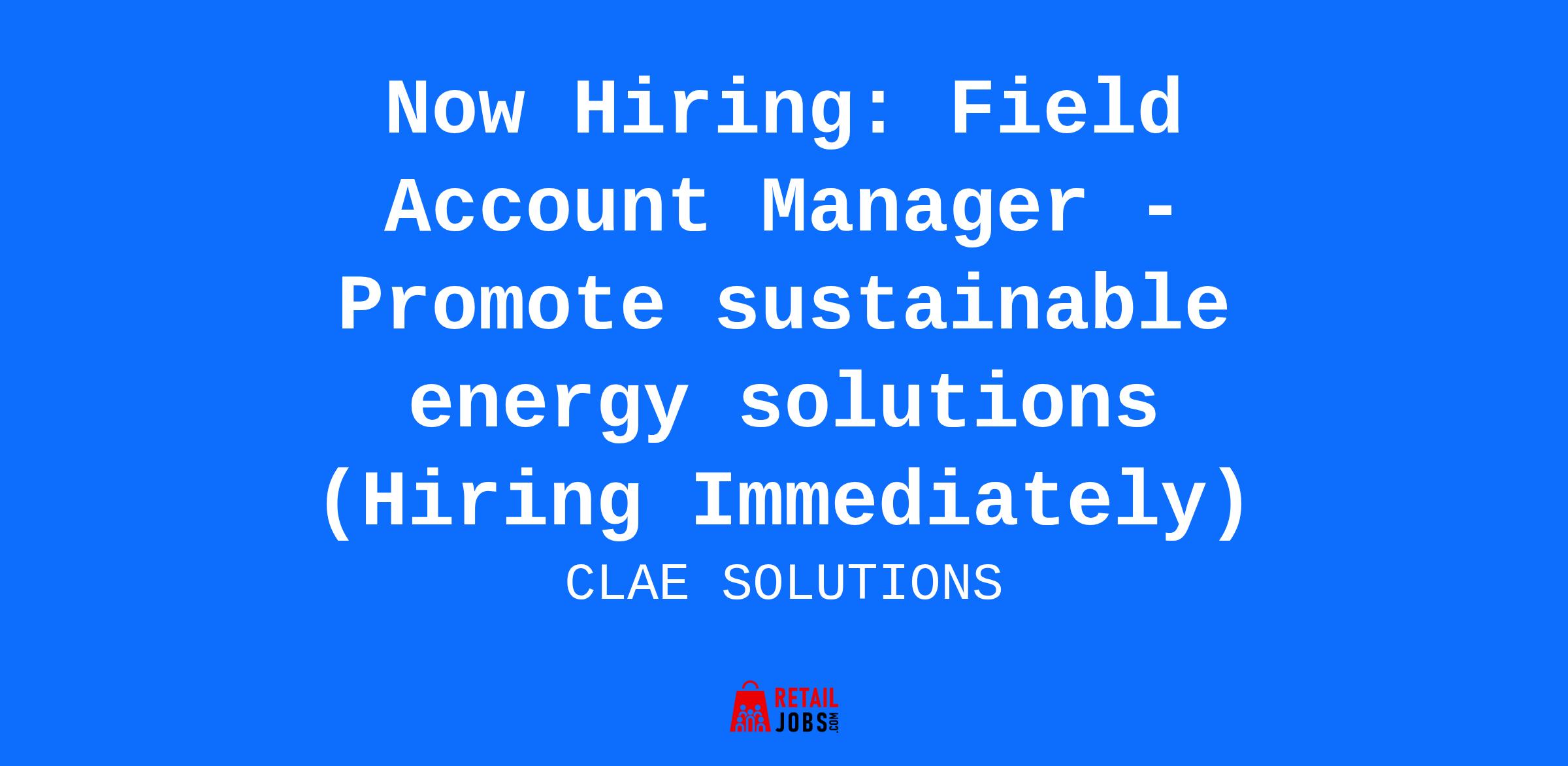 Now Hiring: Field Account Manager - Promote sustainable energy solutions (Hiring Immediately)